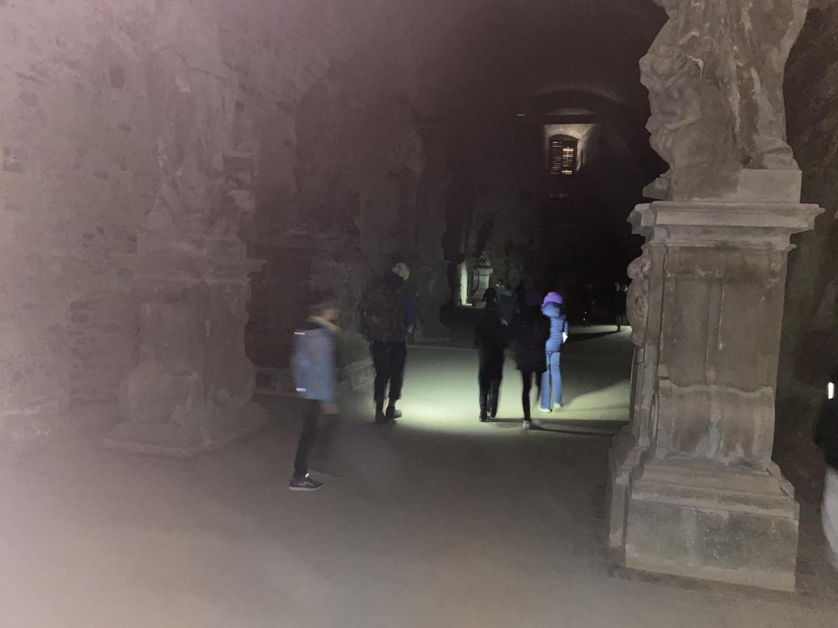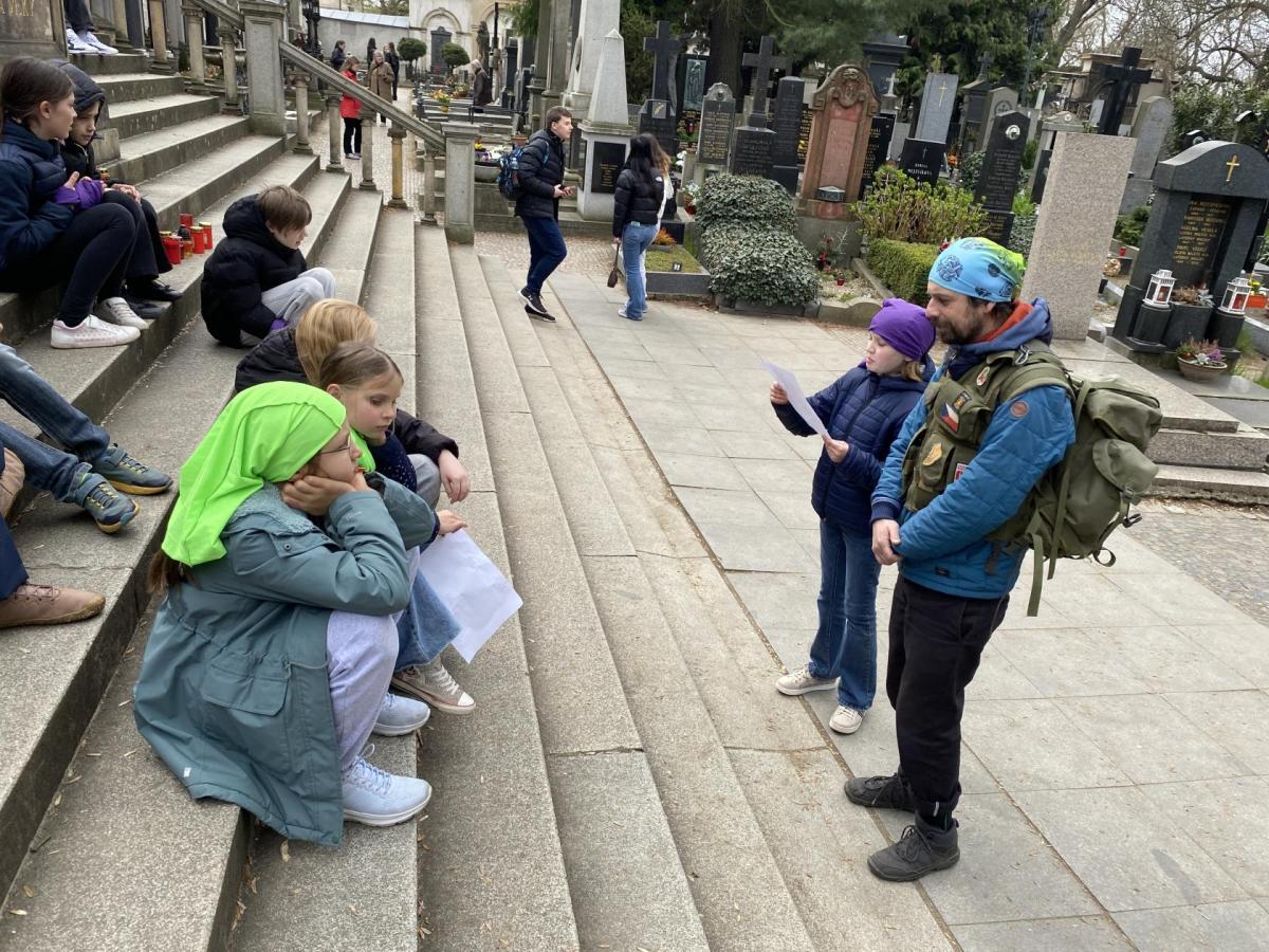 Další část našeho bádání probíhala na přilehlém hřbitově, kde jsme nejen plnili další úkoly, ale také si uvědomili význam tohoto místa a osobností, které jsou zde pochovány. Velkým zážitkem byla i procházka kasematami, kde panovala tajemná atmosféra a člověk si dokázal lépe představit, jak to zde fungovalo v dobách husitských válek, švédských nájezdů či v průběhu obležení Vyšehradu francouzskými pluky.