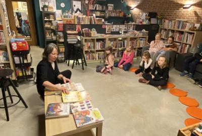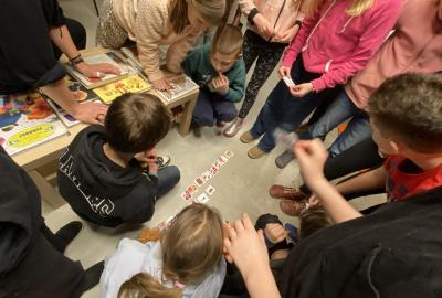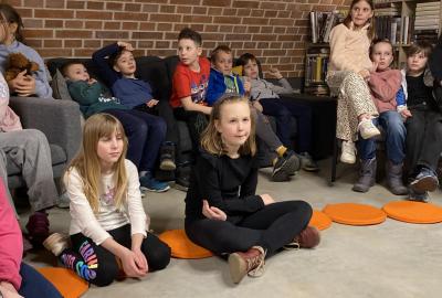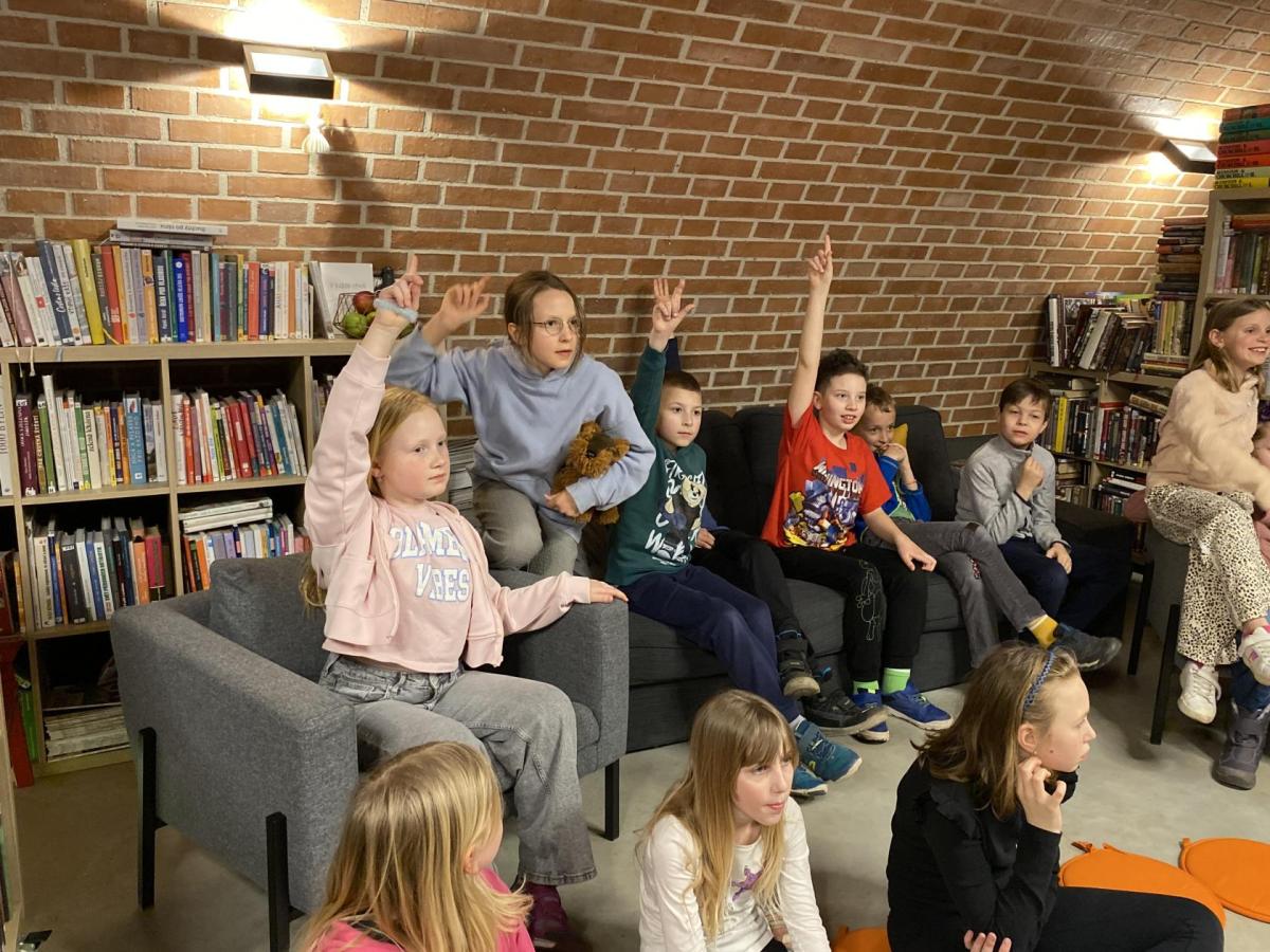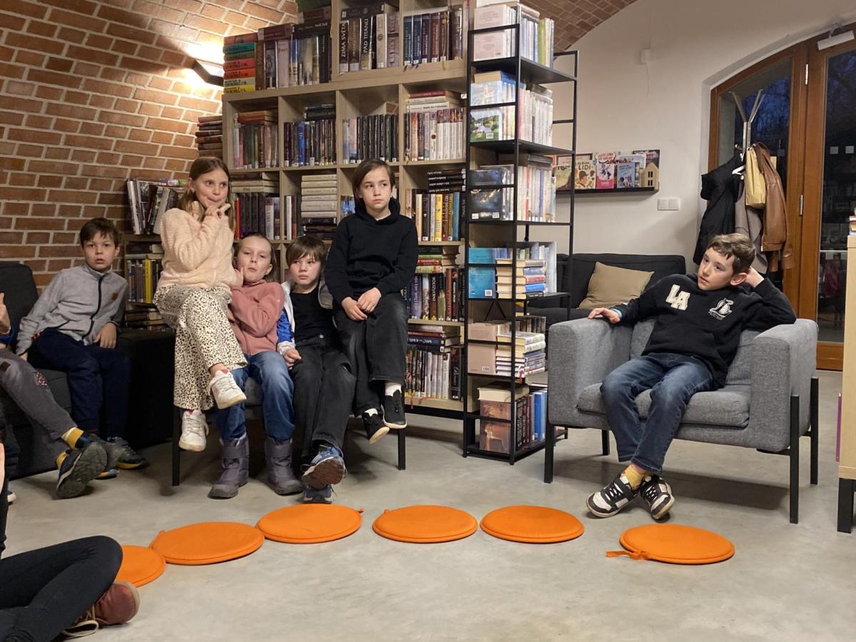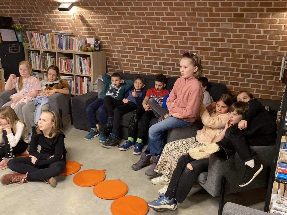 Hlavní část programu se odehrála v knihovně, která se na tu noc, díky naší skvělé knihovnici paní Vidové, proměnila v kouzelné místo plné pohádek, ilustrací a příběhů. Usadili jsme se mezi regály s knihami a poslouchali vyprávění o panu Miloši Macourkovi, Adolfu Bornovi i Petru Nárožném. Jejich skvělé umění nás vtáhlo do světa fantazie, humoru a nečakaných nápadů. Povídali jsme si o tvorbě pana Macourka, o postavách z jeho knížek i o tom, jak dokázal obyčejné věci proměnit v neobyčejné.