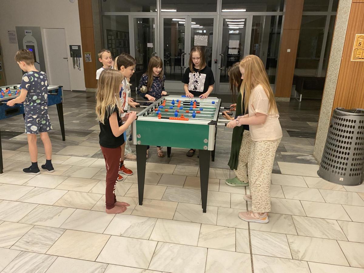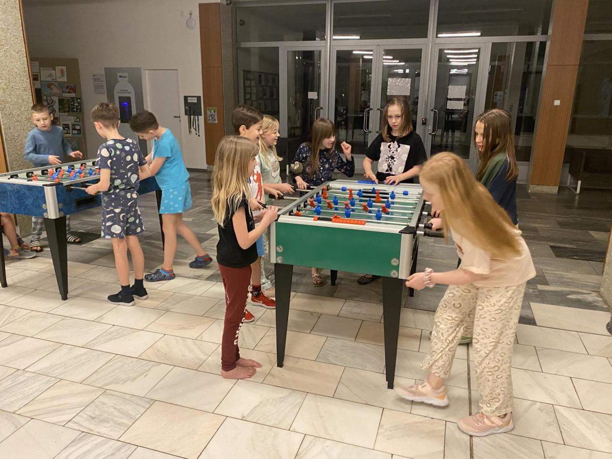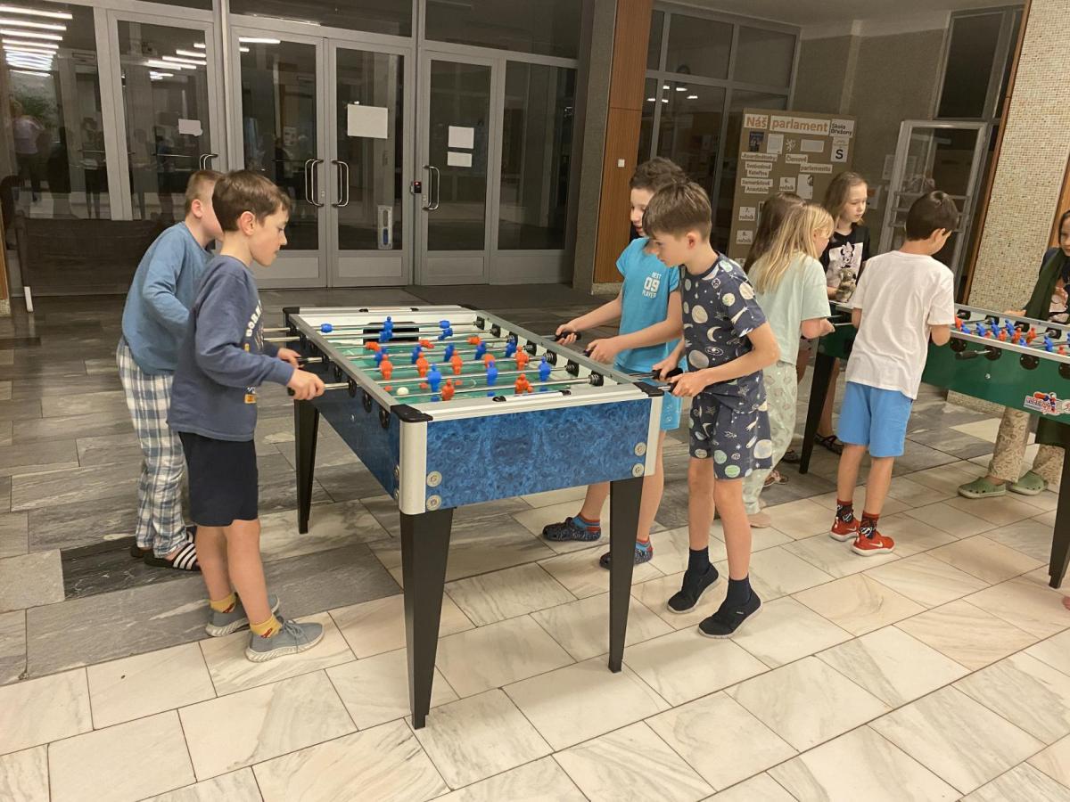 Když jsme už už usínali, přišla paní učitelka s návrhem: "A kdo si dá půlnoční fotbálek?". No jasně, že všichni! Rychle jsme se zvedli, utíkali chodbami a za chvíli už volali vítězné:" Gól!" I přes únavu jsme do hry dali všechno - smích a nadšení se rozléhaly celou halou. Byl to dokonalý závěr nabitého večera.