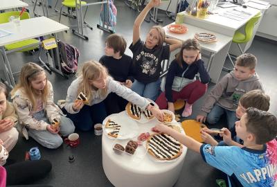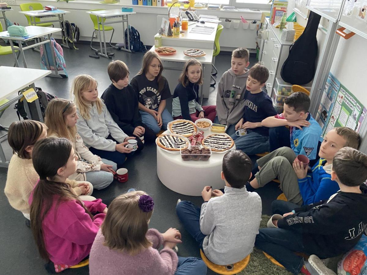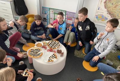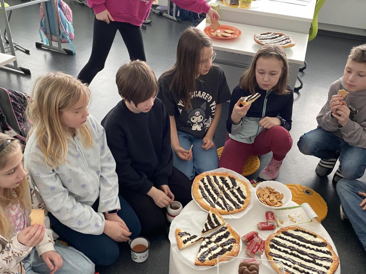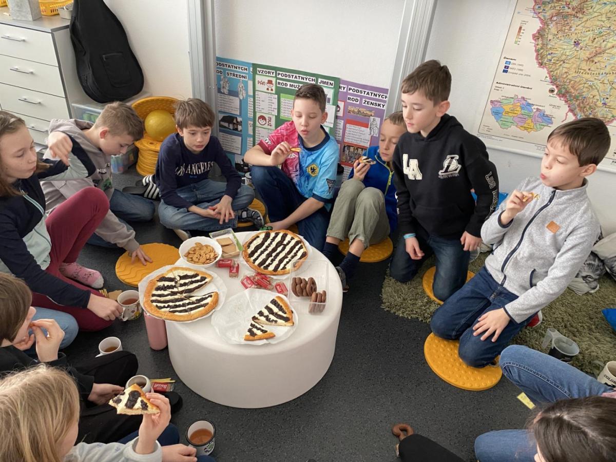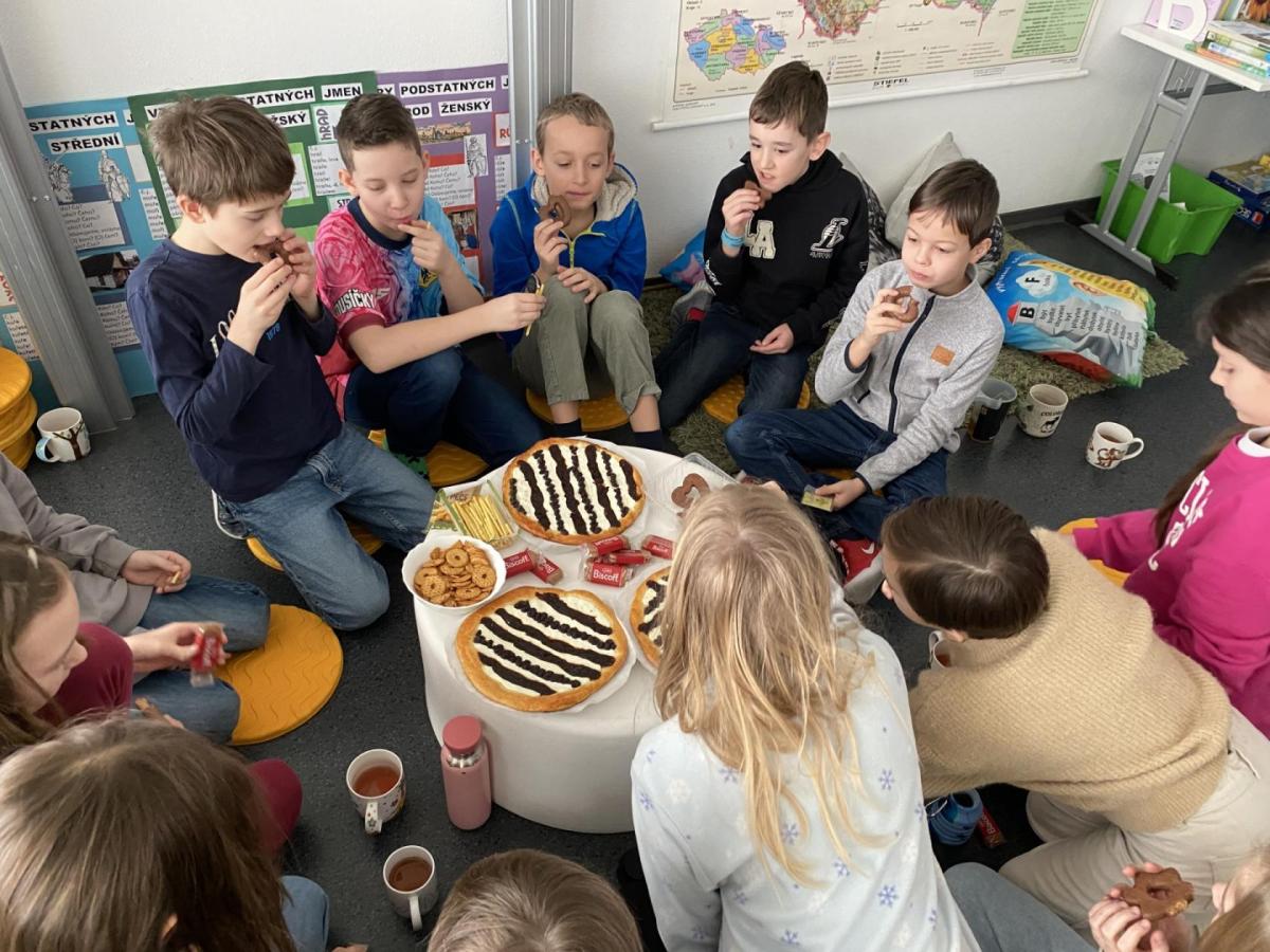 Třídní blok jsme zahájili opět opravdu příjemně - společnou snídaní nejen výborných chodských koláčů, které doma připravil Péťa za vydatné pomocí maminky. U dobrého jídla panovala pohodová nálada. V tomto úvodním kruhu jsme využili možnost povídat si i jinak než jen o škole.