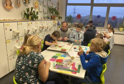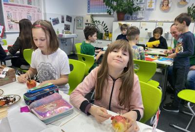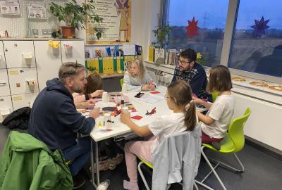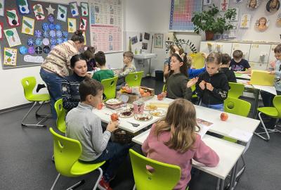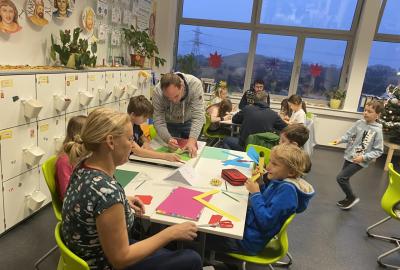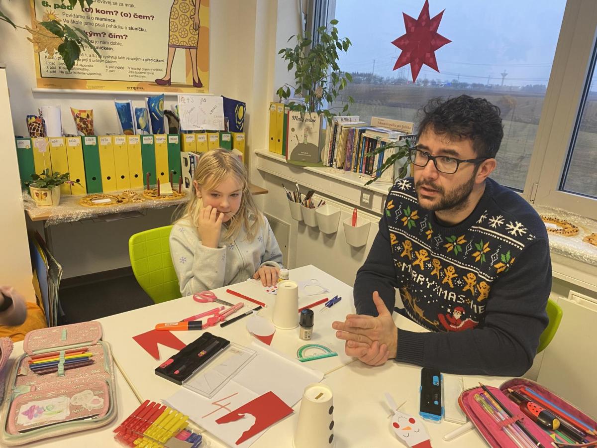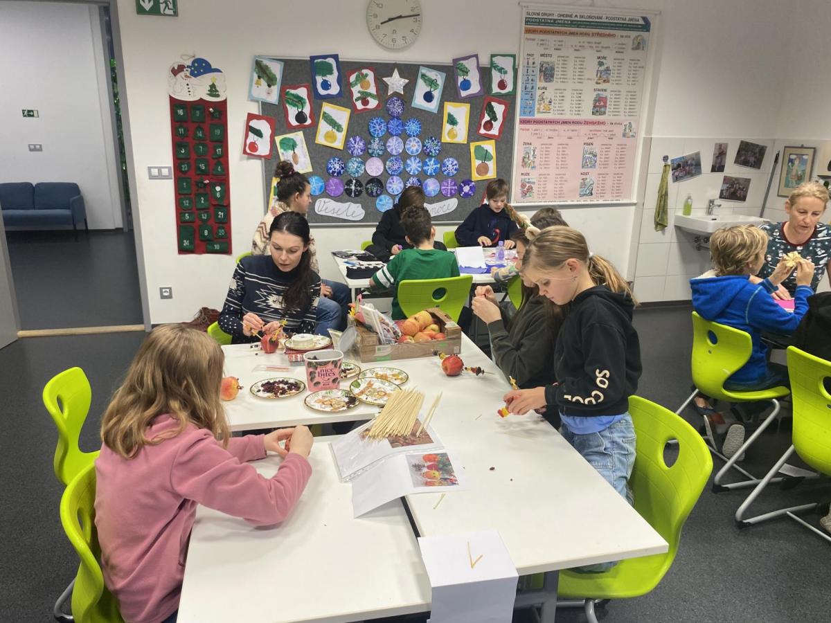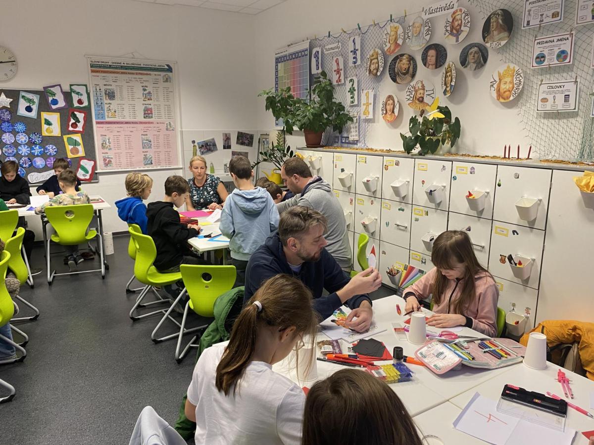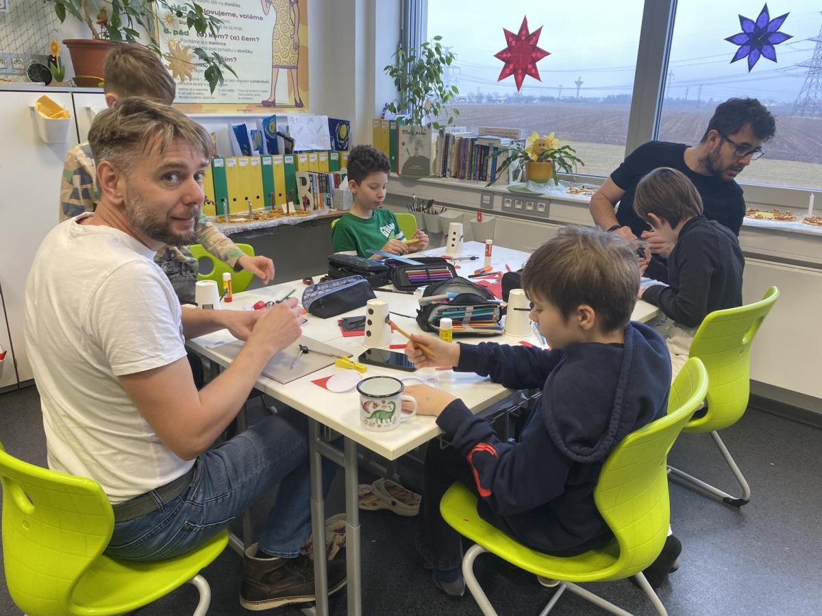 Jak to už s těmi tradicemi bývá, tato tvořivá, patří u nás ve třídě k nejoblíbenějším! Každý rok se těšíme, kdy za námi přijdou naši rodiče na celé dopoledne a na jakém krásném výrobku s nimi budeme pracovat. Maminka našeho Péti, za vydatné pomoci Sebíkova taťky, nás naučila skládat pohyblivý ornament z kartonu. V dílničce, kterou již tradičně vedli tatínkové Vojtíka a Matěje, jsme si vyrobili sněhuláčka z papírových kelímků. Každé vánoční období za námi do dílniček chodí také Zarinčina maminka, a vždy s sebou přinese nějaký neobvyklý nápad. Tentokrát to byla skládaná hvězda na okno z hedvábných papírů. Voňavou dílničkou nás provedla maminka naší Evelínky, protože jsme zde tvořili krásné svícky z jablíček a různým dalších dobrůtek. A ten, kdo byl při vyrábění svícnu rychlejší, si mohl ještě ozdobit kartonová srdíčka a kouličky ubrouskovou technikou. Všechny dílničky jsme si vážně moc a moc užili a výrobky se povedly nad očekávání. Naši kreativitu ocenila i paní ředitelka, která se zastavila na malou tvořivou ochutnávku. Čtyři dopolední hodiny plné nadšení, úsměvů, pohody a vánoční nálady uběhly jako mávnutím kouzelného proutku a my jsme se našimi maminkami a tatínky museli rozloučit. Poděkovali jsme jim bouřlivým potleskem a paní učitelka ještě s mrknutím oka přidala, že už se těší na Velikonoce. Určitě si zase něco hezkého vyrobíme. Tak moc a moc děkujeme a jsme vážně rádi, že vás to s námi stále baví!