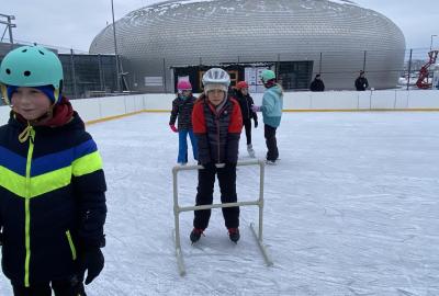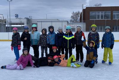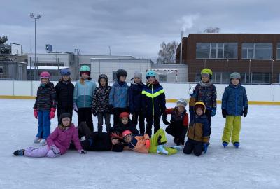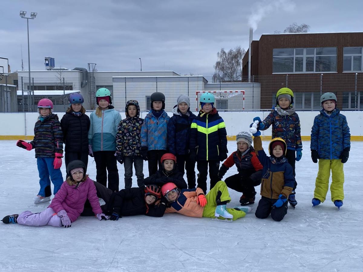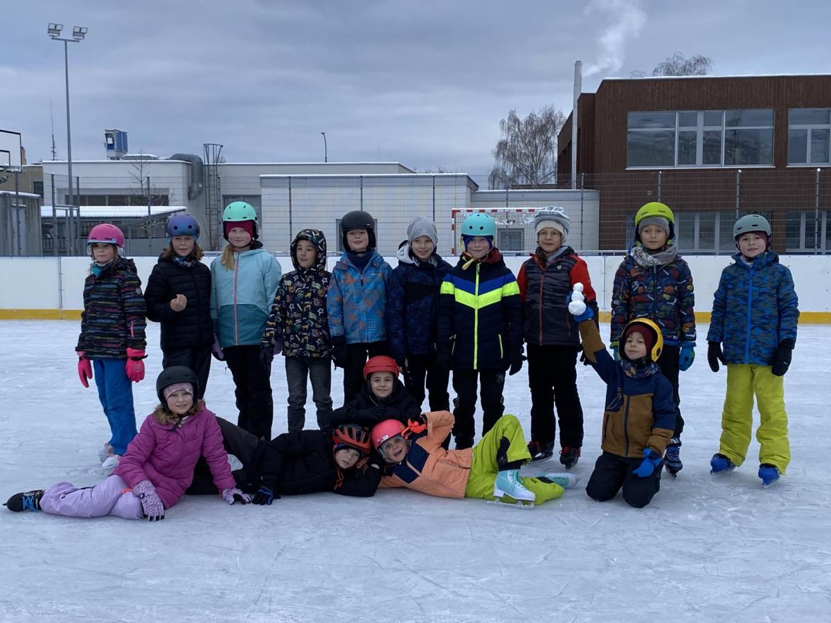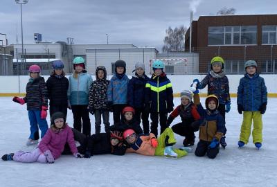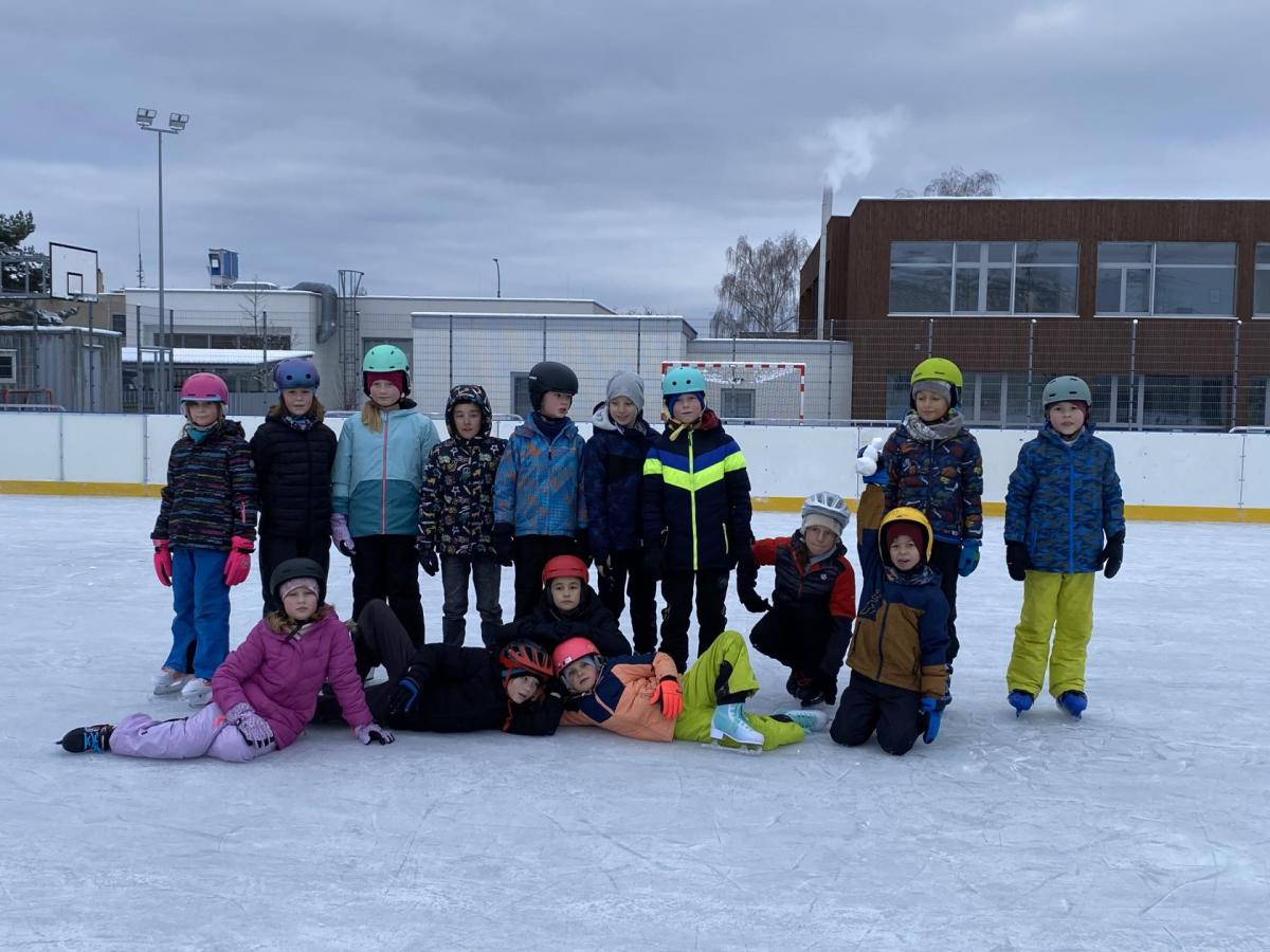 Máme velkou výhodu, že máme kluziště hned u školy. Dostali jsme tak možnost "vyřádit se" i během dopoledního vyučování. Naše první hodina s bruslemi vyšla ma čtvrtek. Prima bylo, že i okolí se obléklo do bílého hávu a sníh a mráz nám pomohl vykouzlit tu pravou ledovou náladu. Přidali jsme k tomu brusle, helmu a rukavice a vydali se na led. Paní učitelka a naši dva tatínkové nám drželi palce, aby pády nebyly příliš tvrdé a brusle nás udržely na kluzišti co nejdéle. Někteří z nás se ukázali jako zdatní bruslaři a Kačka dokonce hodila sem tam nějakou tu skoropiruletku. Jiní zase potřebovali získat trochu jistoty. K tomu jim posloužila větší či menší hrazdička. Ledovou plochu jsme si užívali opravdu celou hodinu, takže na jejím konci už nepadal téměř nikdo! Zimní radovánky nás bavily, teplý čaj z termosky od maminky zahřál a velká pochvala od paní učitelky byla odměnou pro všechny sportovce! Bylo to tak moc super, že příští čtvrtek vyrážíme na led znovu!