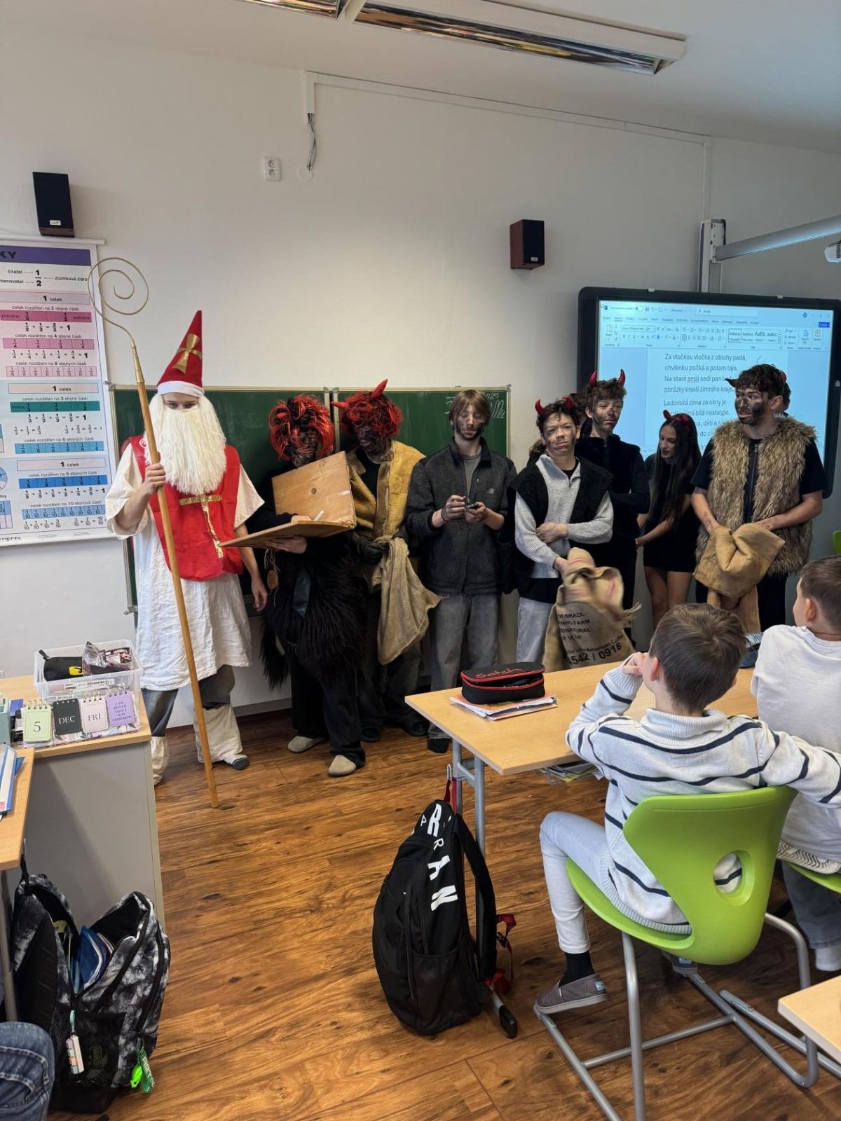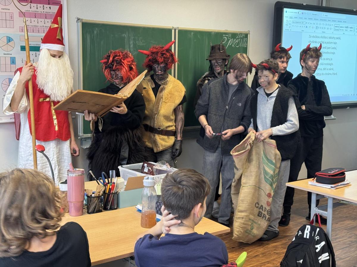V pátek 5. prosince panovala ve třídě 5.A lehká nervozita. Třída očekávala příchod Mikuláše se svou družinou.