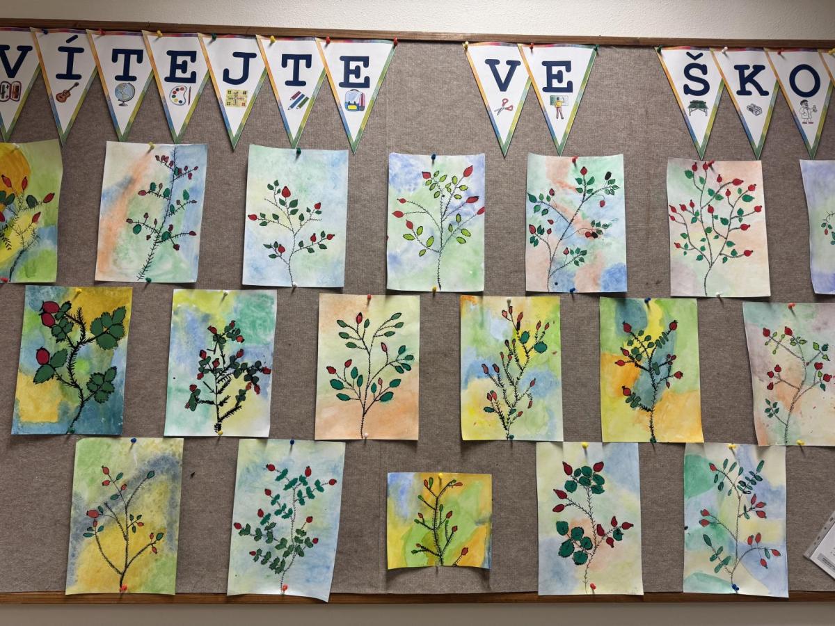 Oblohu plnou barev a krásnou duhu sledovali páťáci ve čtvrtek ráno z okna. Podzim čaruje svými barvami nejen v přírodě, ale i na nástěnce v 5. A.