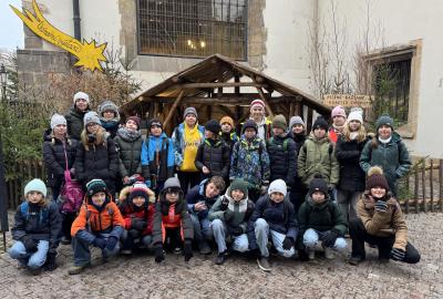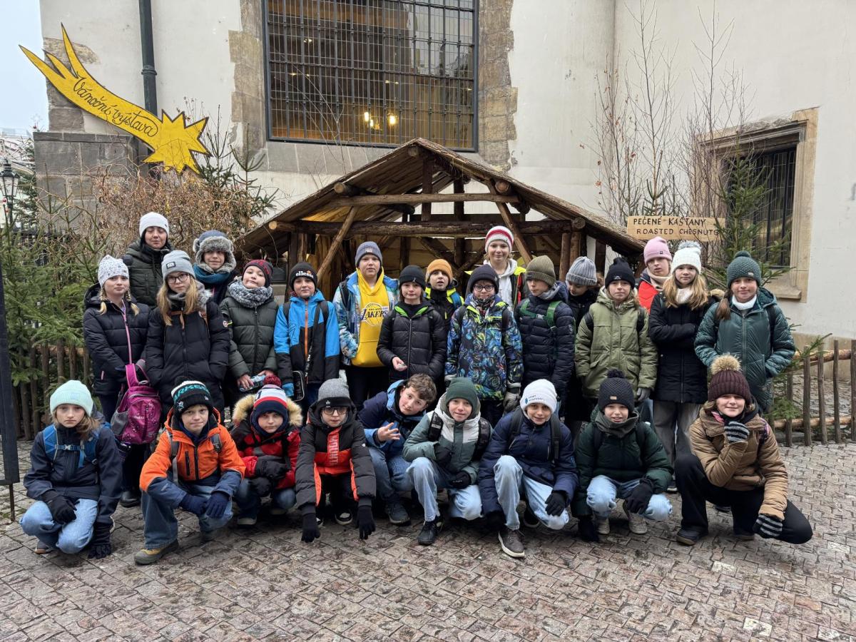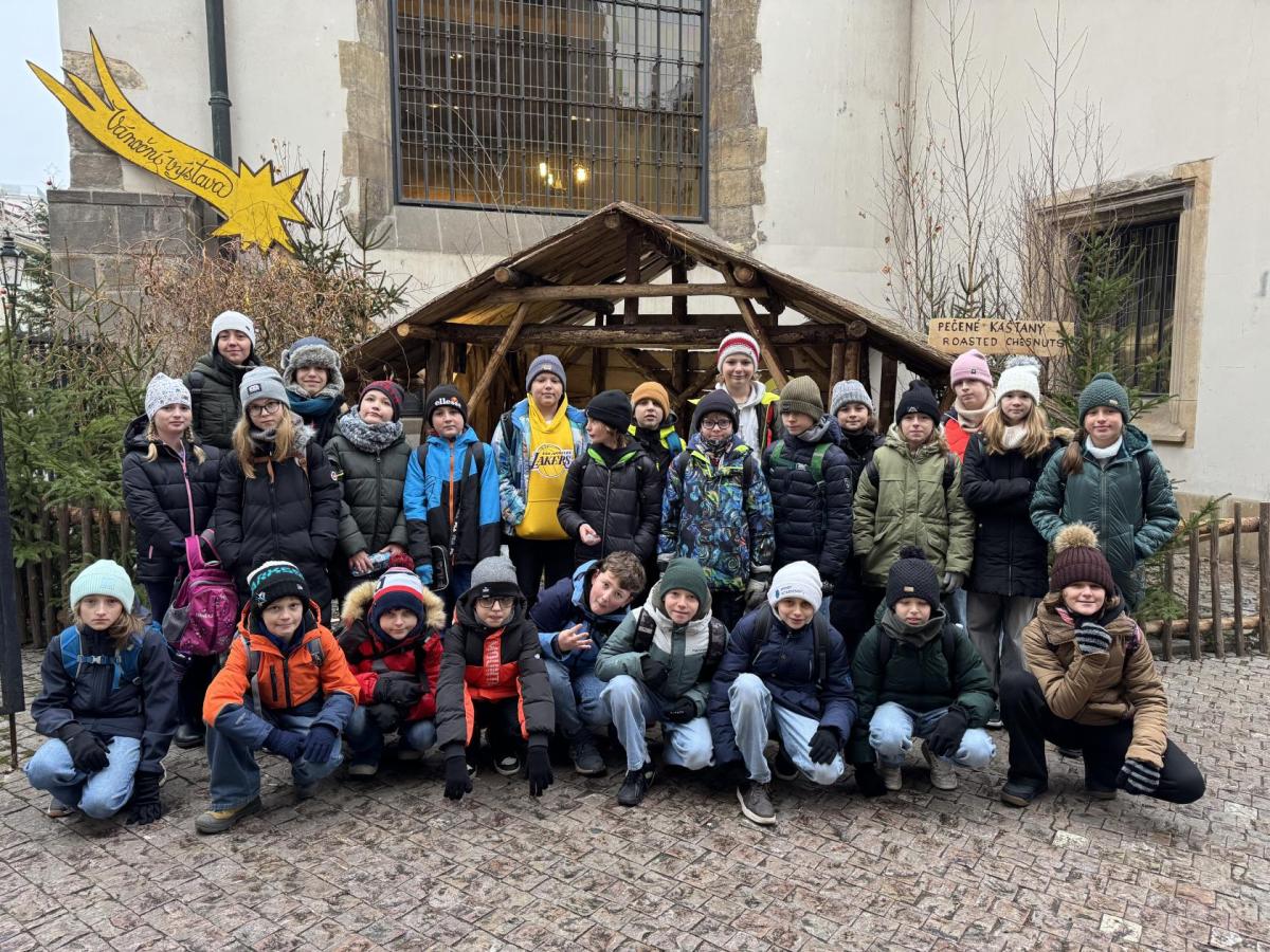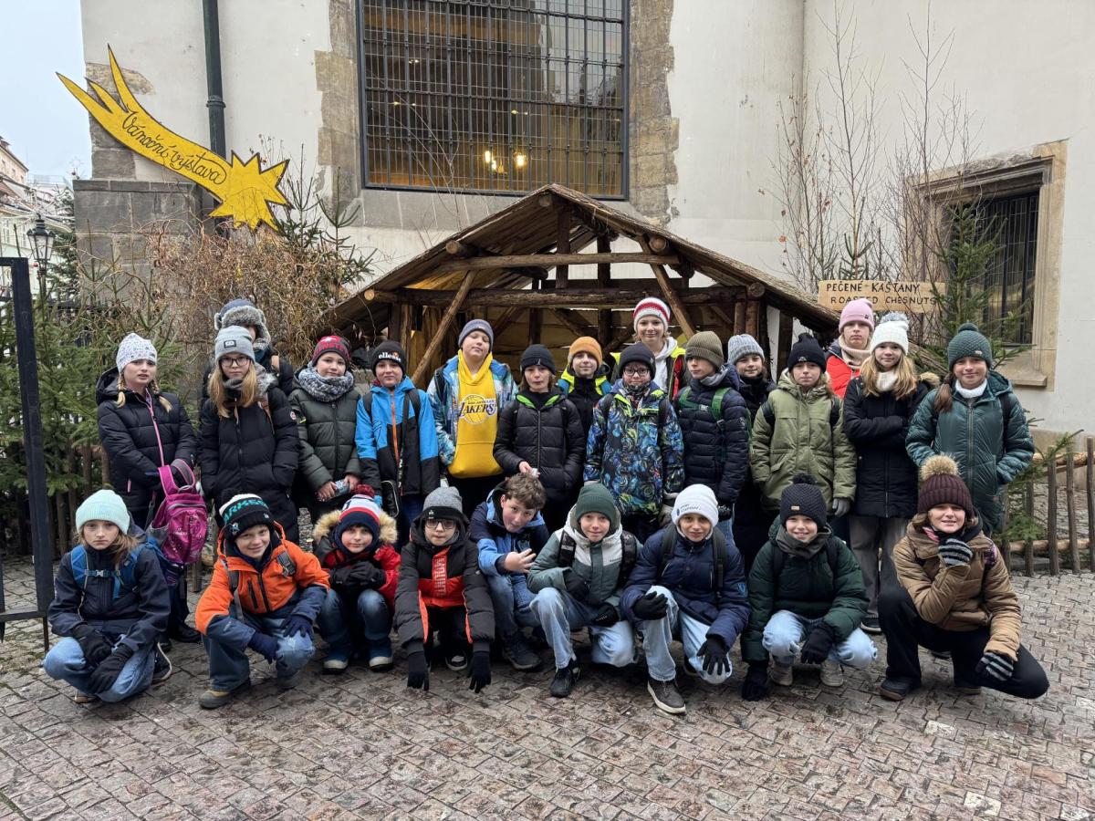 V pátek 19. prosince vyrazili páťáci na vánoční výlet do Prahy. Ráno zamířili do Betlémské kaple na vánoční výstavu. Mohli si prohlédnout staročeský trh, kde například krajkářky z Brna předváděly výrobu krajek paličkováním. Nechybělo několik betlémů a možnost zakoupit si drobné dárky.