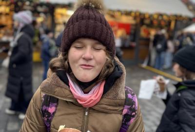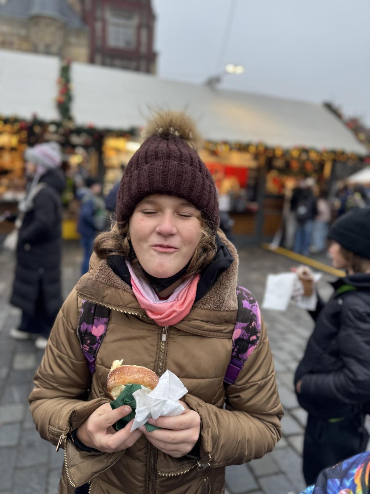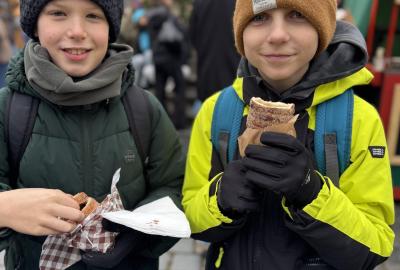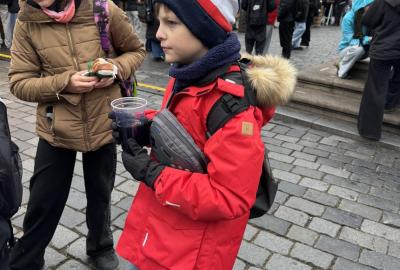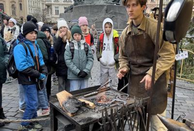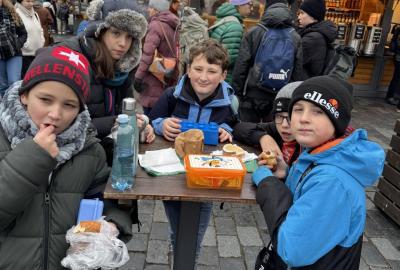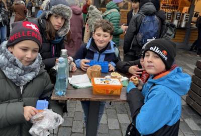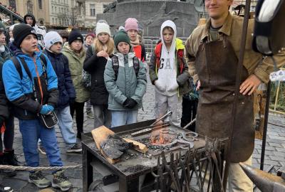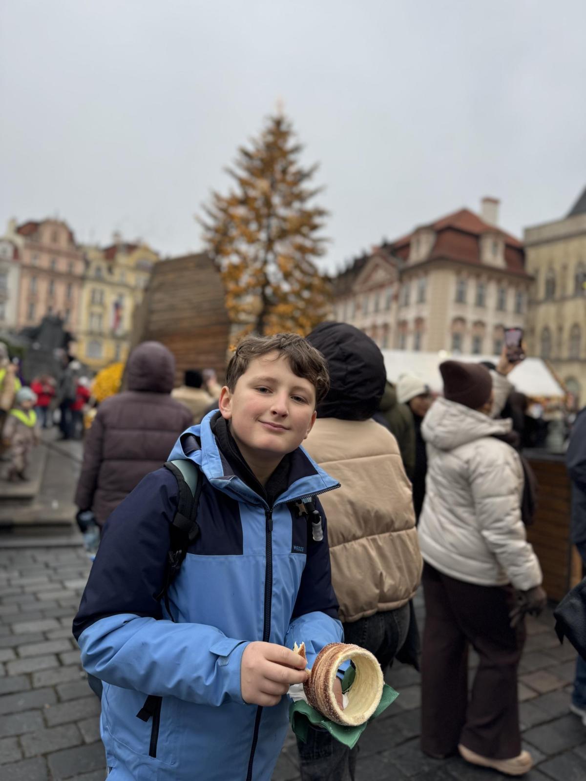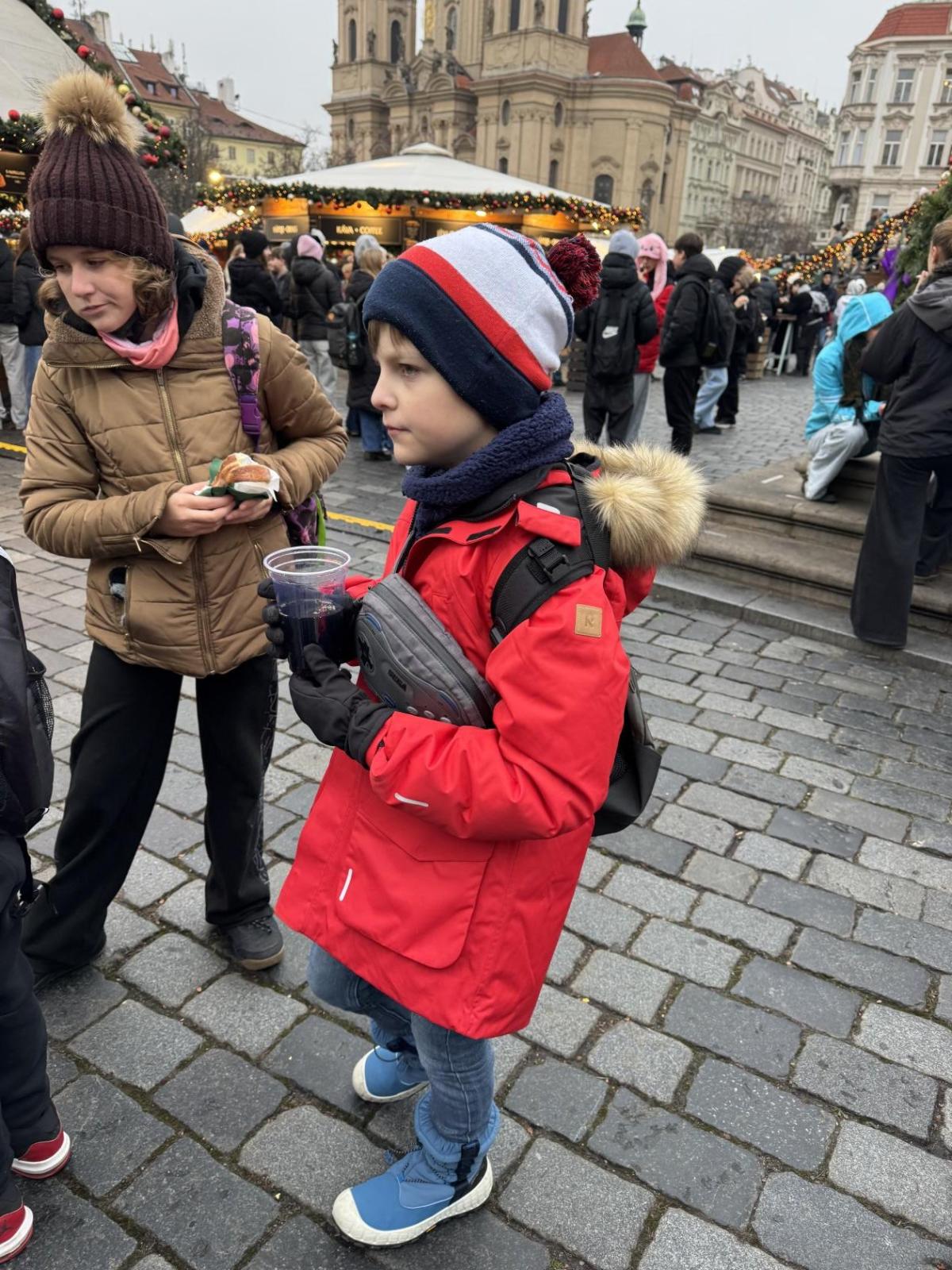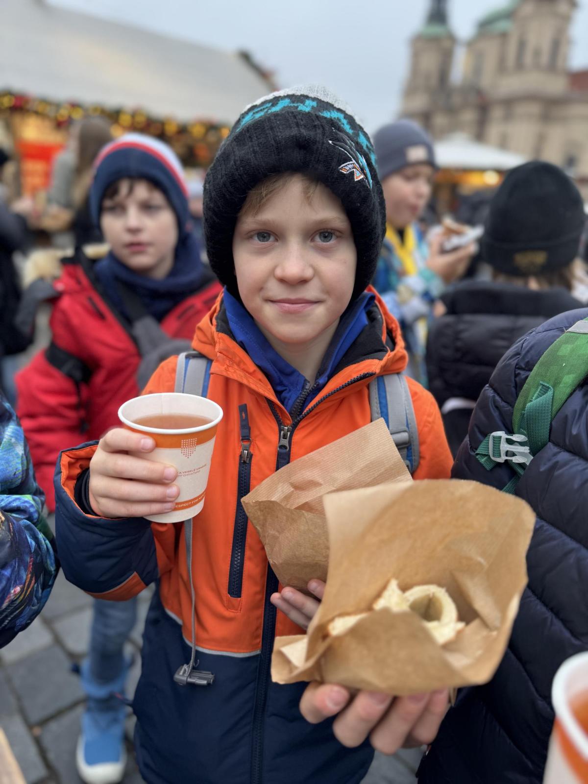 Z Betlémské kaple se třída přesunula na Staroměstské náměstí, kde si děti dopřály tradiční trdelník, teplý ovocný nápoj nebo třeba čerstvé bramborové lupínky. Se zájmem sledovali počínání mistra kováře. Samozřejmostí byla prohlídka vánočního stromu.