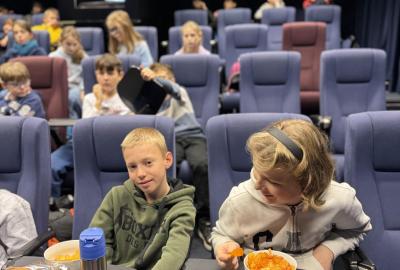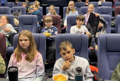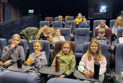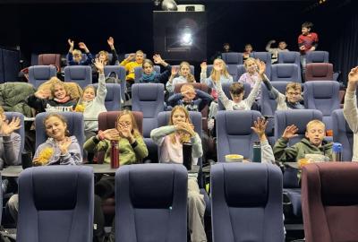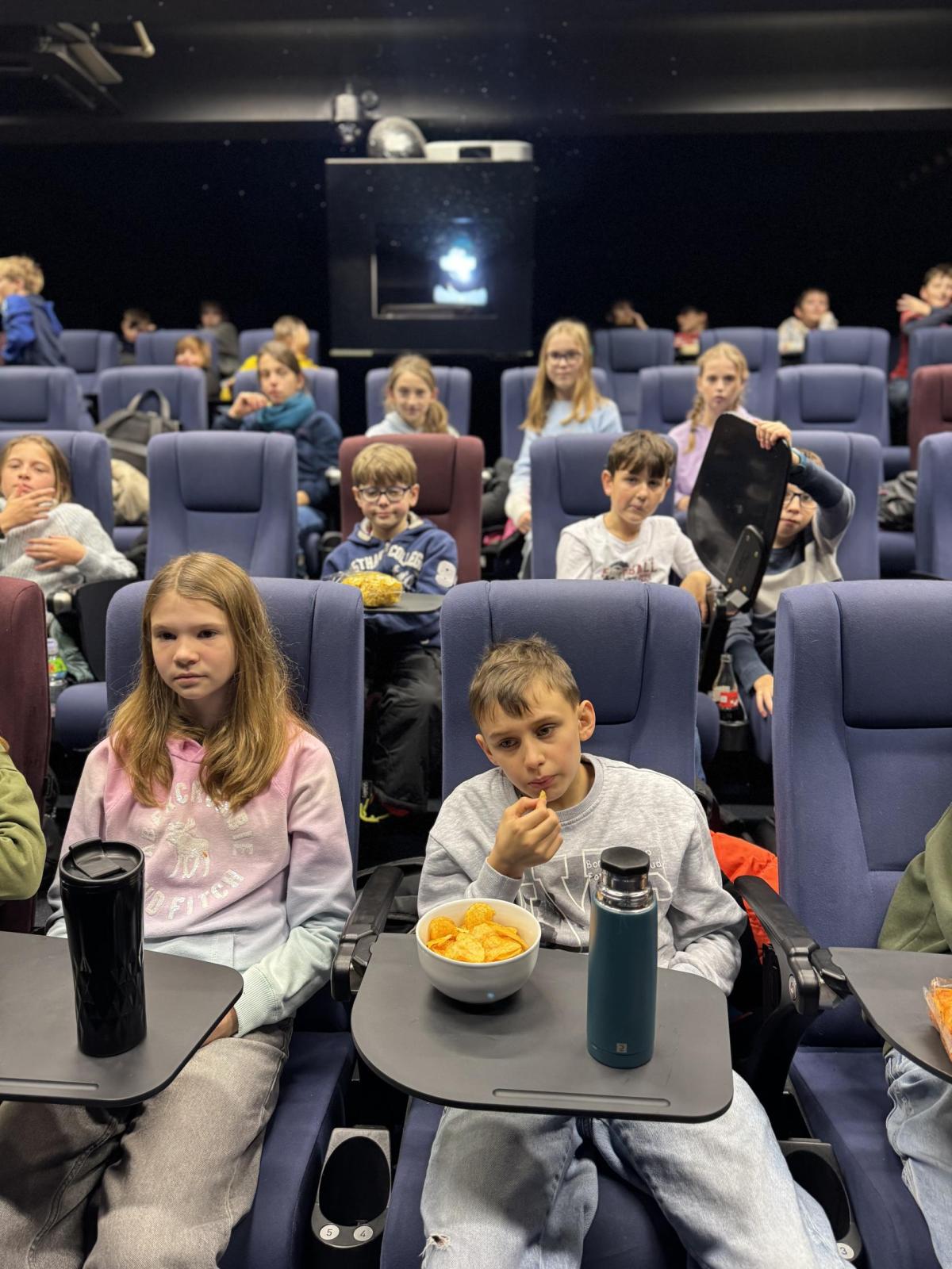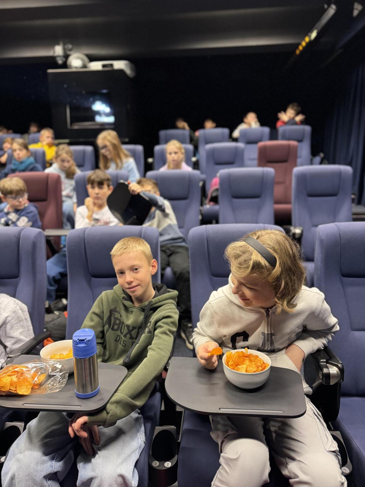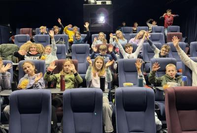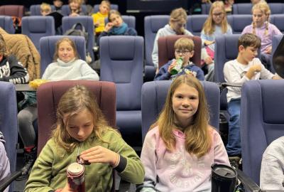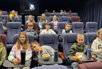 Po občerstvení na Staroměstském náměstí páťáci pokračovali do Edison Filmhub v Jeruzalémské ulici, kde na ně čekalo promítání filmu Medvědí princ. Velkolepé, srdečné a chytře vtipné vyprávění na motivy jedné z nejmilovanějších skandinávských lidových pohádek. Příběh o lásce, chamtivosti a odvaze, odehrávající se v krásné norské krajině děti mohly vidět v předpremiéře a moc se jim líbil.
