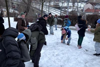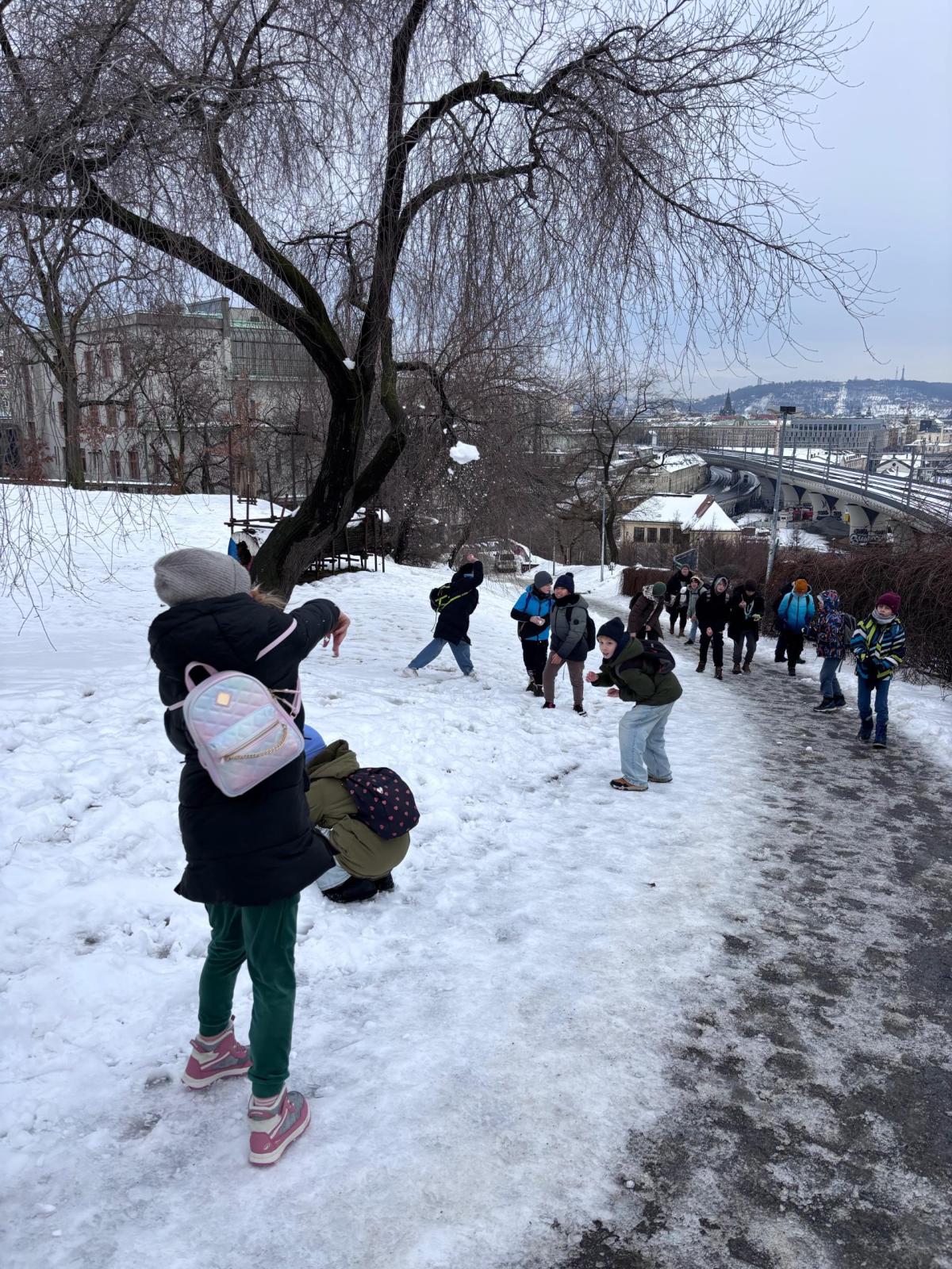 Protože cestou nahoru leželo v okolí ještě mnoho zbylého sněhu, strhla se mezi dětmi také bitva. Naštěstí jen sněhová a v přátelském duchu! Kluci a holky si ji ale opravdu užili!