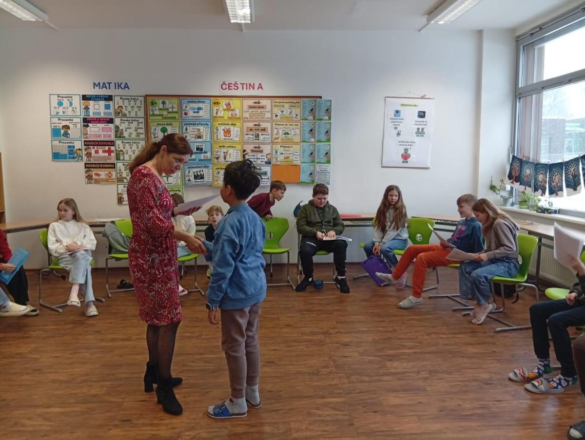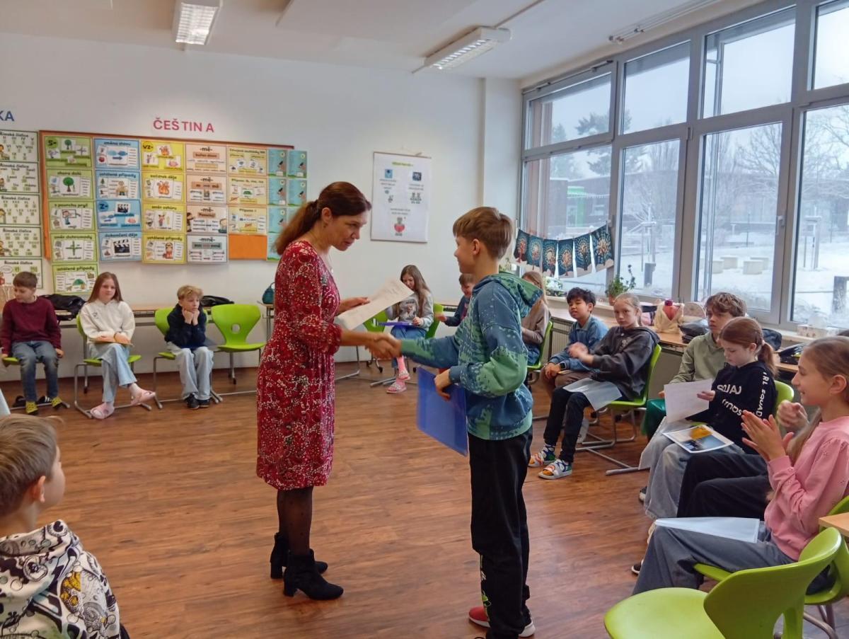 Ve čtvrtek 29.1. jsme se sešli ráno ve třídě v trošku slavnostní náladě. Kromě již tradiční KiVa lekce nás čekalo zhodnocení celého pololetí a hlavně VYSVĚDČENÍ!