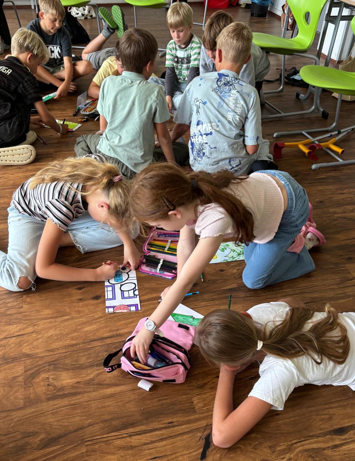 Aby nás oba nováčci rychle poznali a aby nám všem bylo spolu dobře, věnovali jsme se další den nejen zkoumání prázdninových dobrodružství ostatních, ale také společným hrám a tvorbě nových třídních pravidel. Každý sám a zároveň dohromady jsme nakreslili třídní obraz, který teď visí na čestném místě v naší třídě.