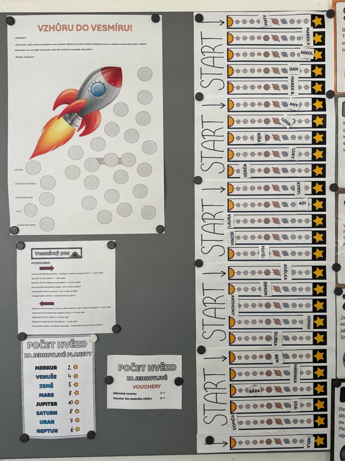V prvním školním týdnu jsme také odstartovali naši novou celoroční hru Vzhůru do vesmíru. Podaří se všem klukům a holkám získat vesmírný pas, aby mohli nastoupit do rakety (jejíž jméno musí teprve vymyslet) a vydat se objevit novou planetu? To se dozvíme v červnu!