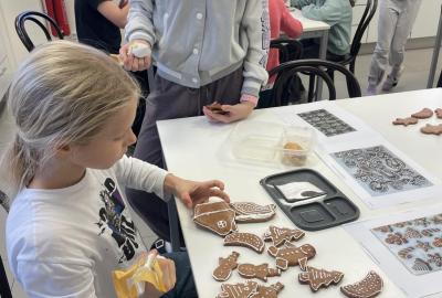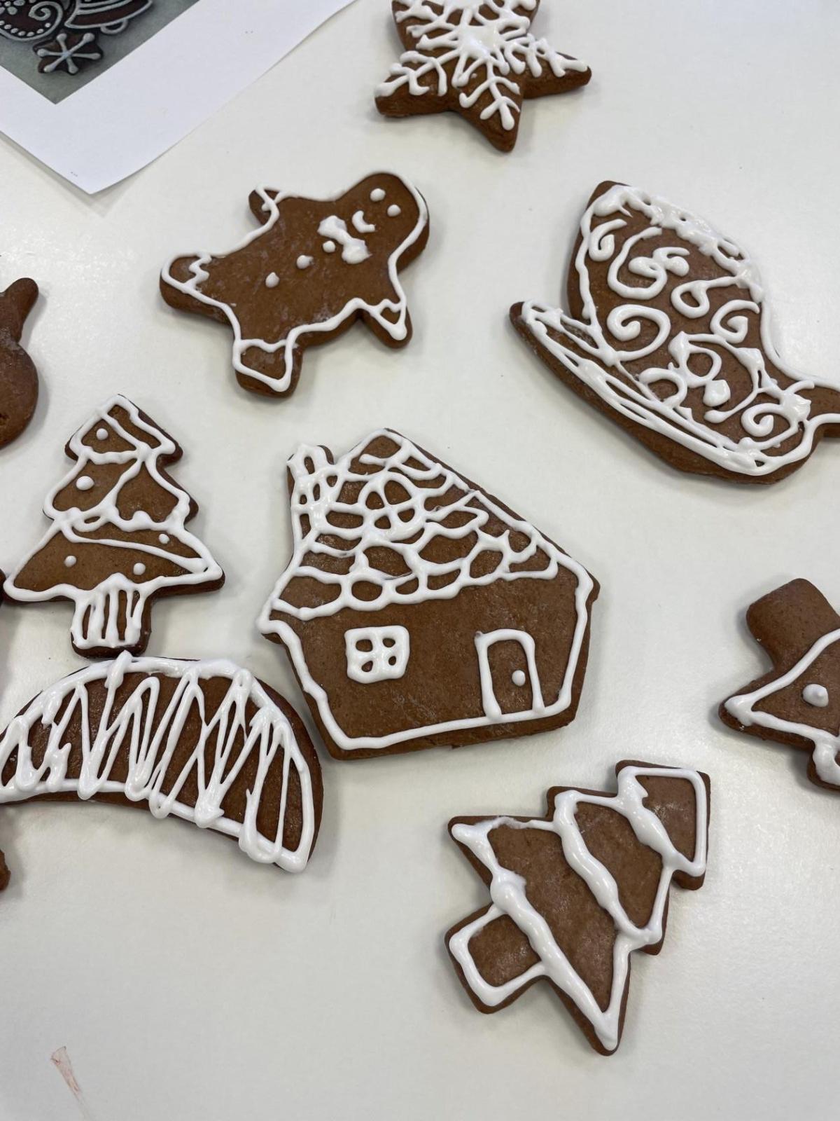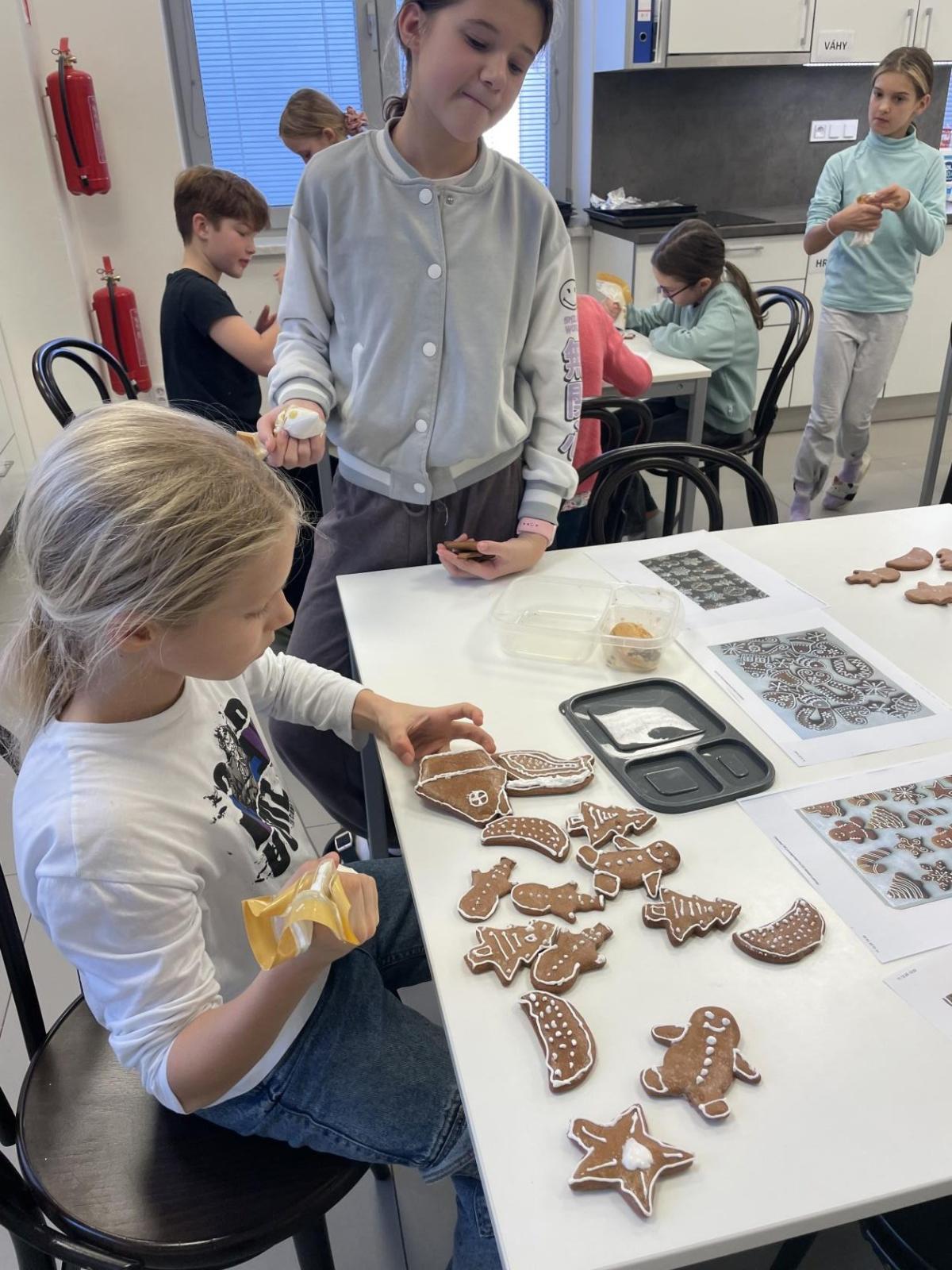 Tak teď už jsou i děti šťastné a veselé, před 14 dny si upekly tématicky vánoční perníčky a dnes si je nazdobily bílkovou polevou. Každý měl svůj zdobící sášek a předlohu pro inspiraci. Děti především zdobily perníčky podle své vlastní myšlenky. Věřím, že perníčky budou hezkou ozdobou vánočního stolu.