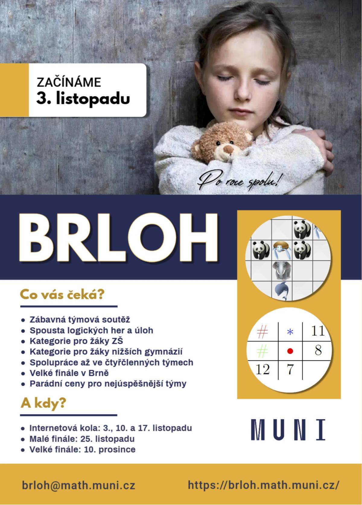 Brloh, to není jen obydlí zvířat, menší obec v okrese Český Krumlov ani jiná menší obec v České republice. Je to především velmi oblíbená a náročná logická soutěž, kterou již skoro 16 let pořádá Masarykova univerzita v Brně ve spolupráci s Gymnáziem Brno (tzv. Jaroškou - gymnázium najdete na třídě Kapitána Jaroše).