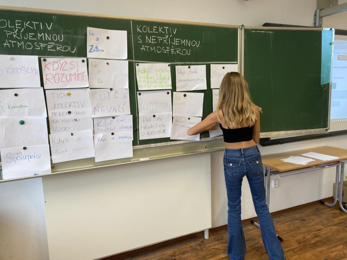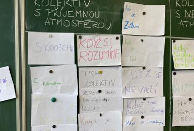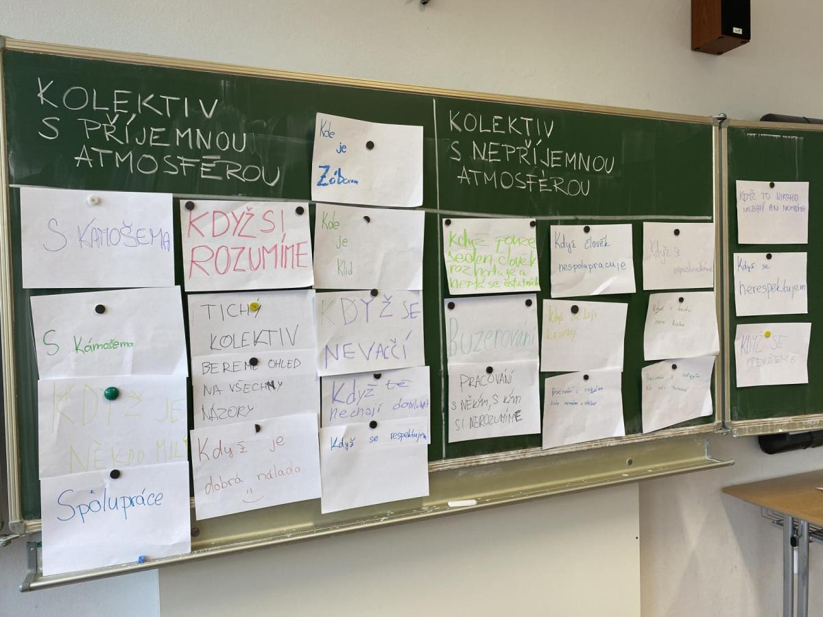 Zajímavá byla také diskuze o tom, jak vypadá kolektiv s příjemnou atmosférou a naopak kolektiv, ve kterém se lidé necítí dobře. Výsledek práce ve skupinkách jsme pečlivě zaznamenali a rozebrali. Na závěr lekce děti formulovaly tři přání pro třídu, která směřovala ke zlepšení vztahů a vytvoření přátelštějšího prostředí.