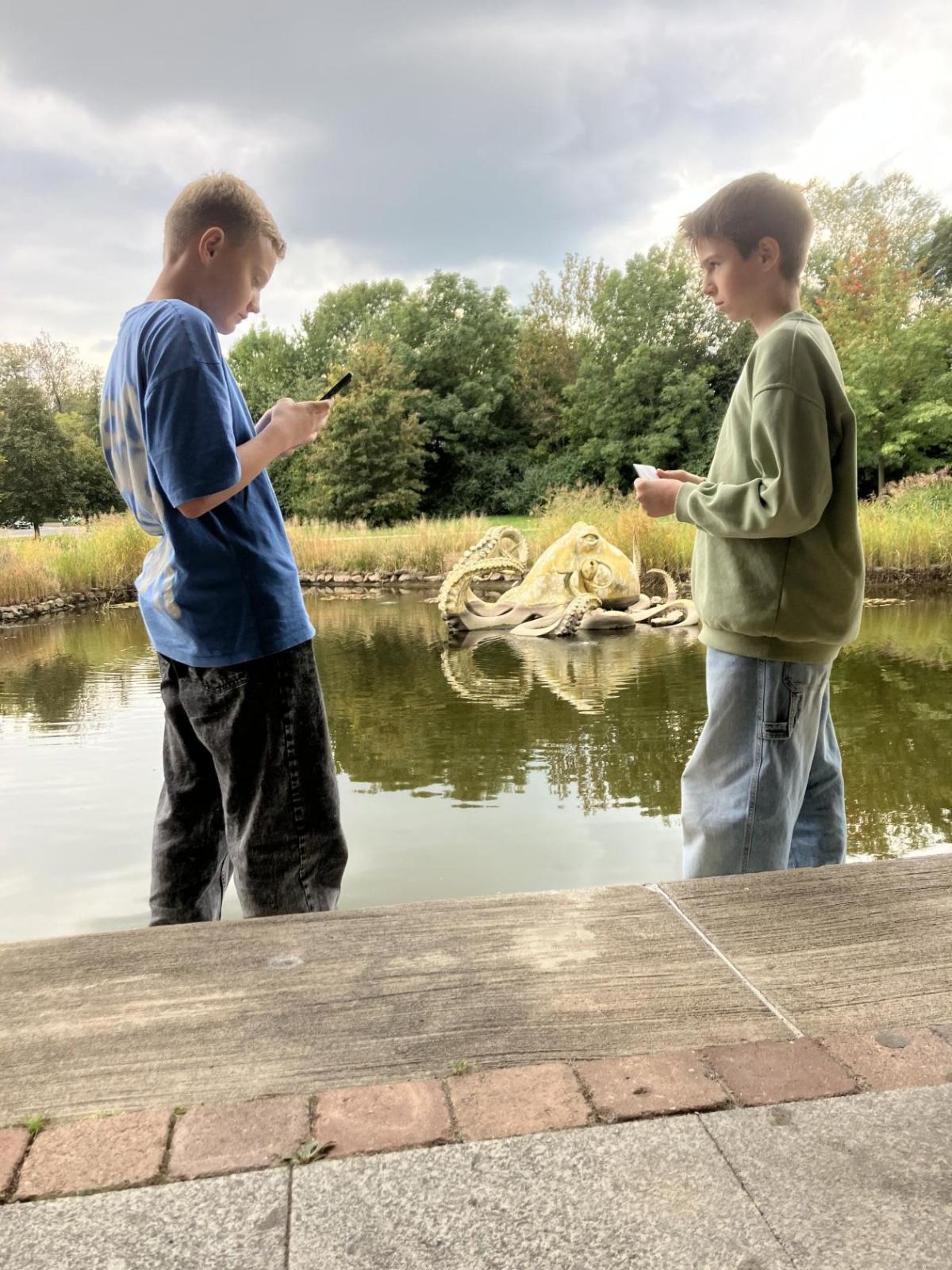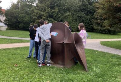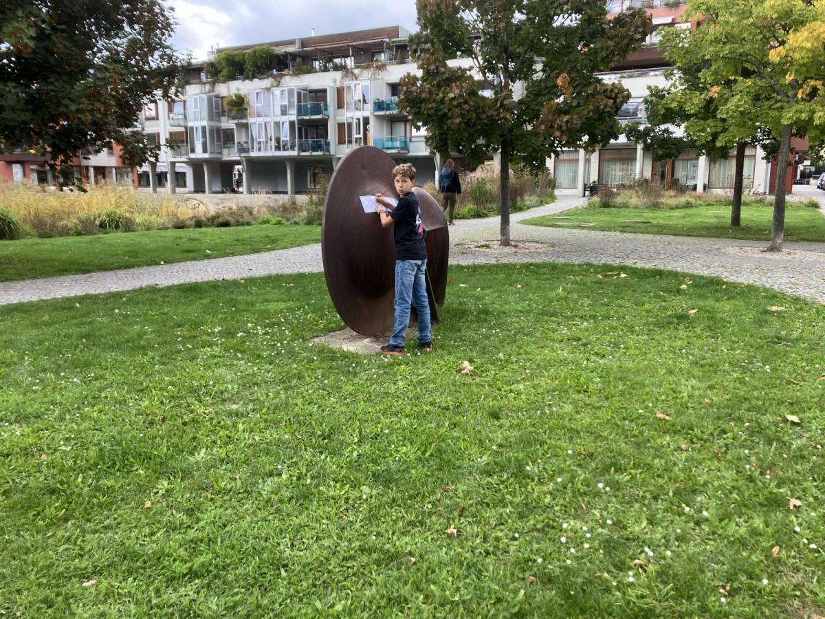 Zajímavé informace o sochách se žáci dozvěděli přímo na místě. Zjistili, že za dvě vyučovací hodiny včetně přestávky, není možné celou dolnobřežanskou galerii pod širým nebem dostatečně prohlédnout. Svou spolupráci zaznamenali na pracovní listy z úžasné knihy "Ahoj socho: Městem s otevřenýma očima" od autorek M. Matysové a L. Štůlové Vobořilové, vydané GHMP 2018. "A proč jsou ve městě sochy?" jim pomohli pochopit dva významní sochaři ve stejnojmenném dokumentu ČT z cyklu Labyrint umění. Obojí je určeno spíše mladším dětem, ale sedmákům to nevadilo :-) Už se těší na vlastní tvorbu!