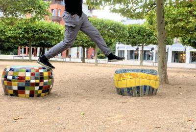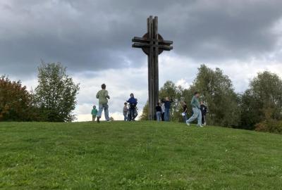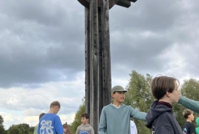 Sedmáci se před vlastní prostorovou tvorbou inspirovali sochaři a jejich díly umístěnými v Dolních Břežanech.