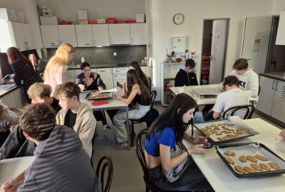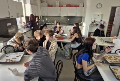 Část třídního bloku 19.11. jsme strávili ve školní kuchyňce. Ovládla nás vánoční nálada a upekli jsme si perníčky. Mohli bychom je nechat odpočinout a změknout.....ale to víte, na konci pečení už nezbyl ani jeden. Po návratu do třídy nás čekalo naopak velmi těžké téma. Naše škola se opět zapojila do akce Bubnovačka a my si připomněli, že každý nemá takové štěstí a nemůže žít život bez násilí. O to víc jsme se snažili vytvořit hluk při společném bubnování a podpořit tak ty, kteří nejsou slyšet.