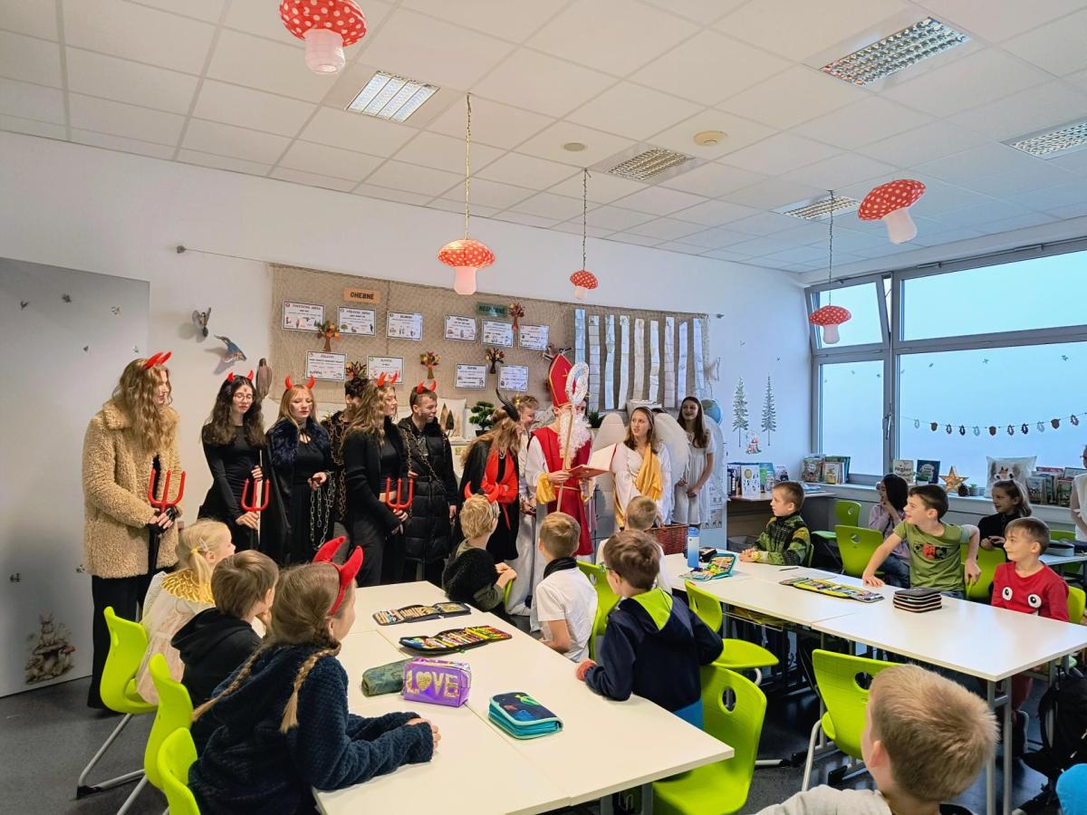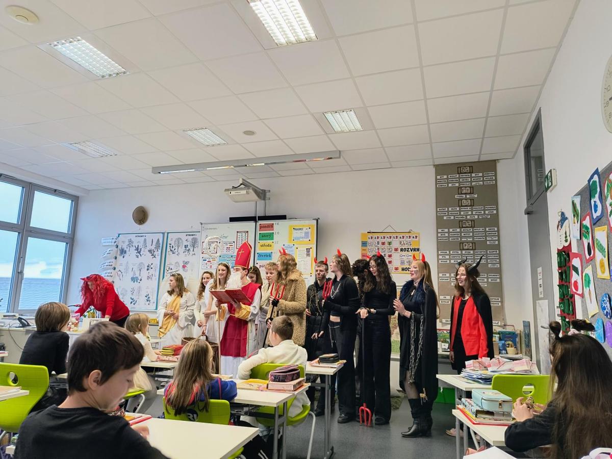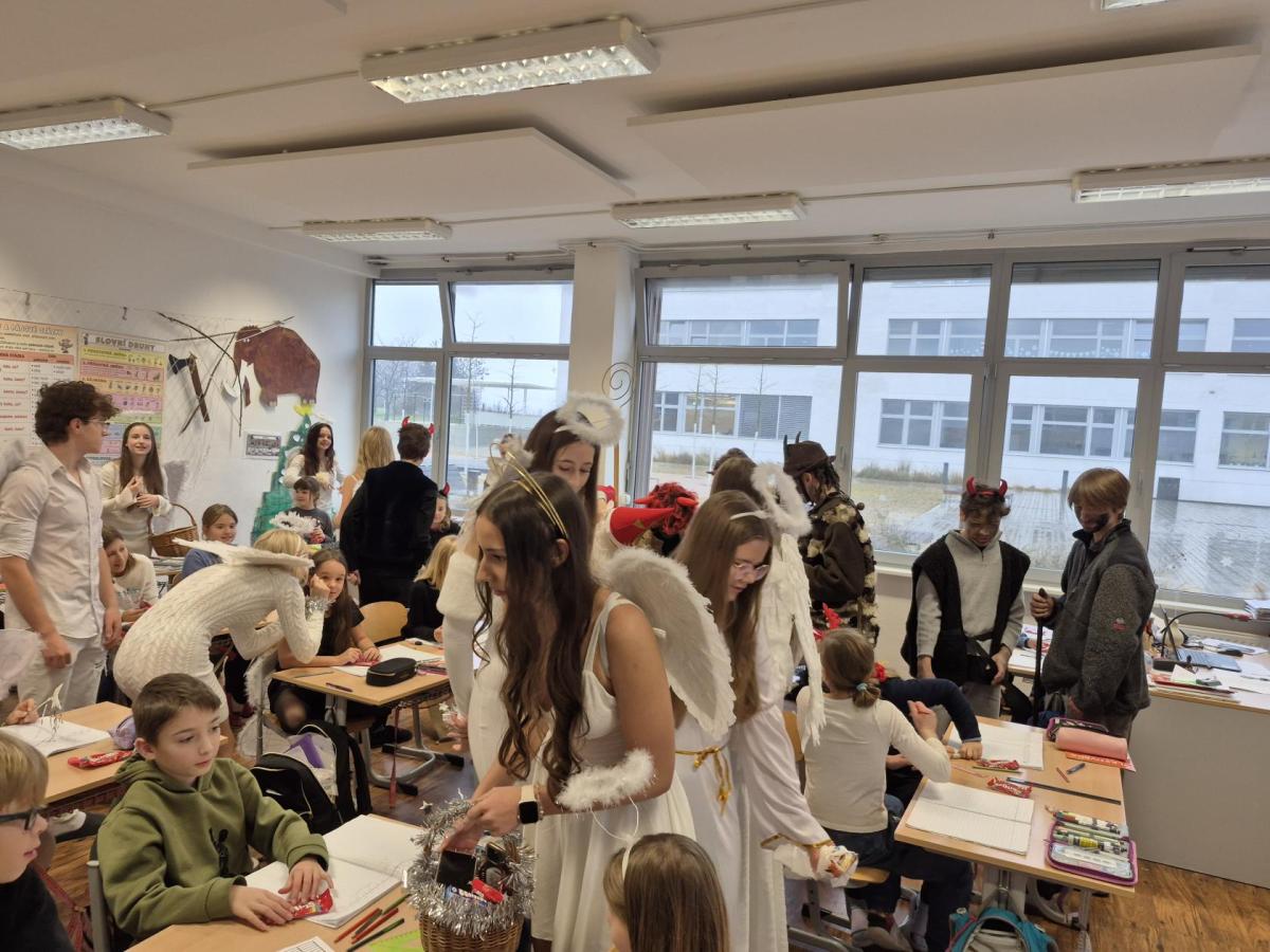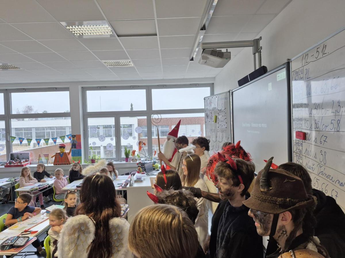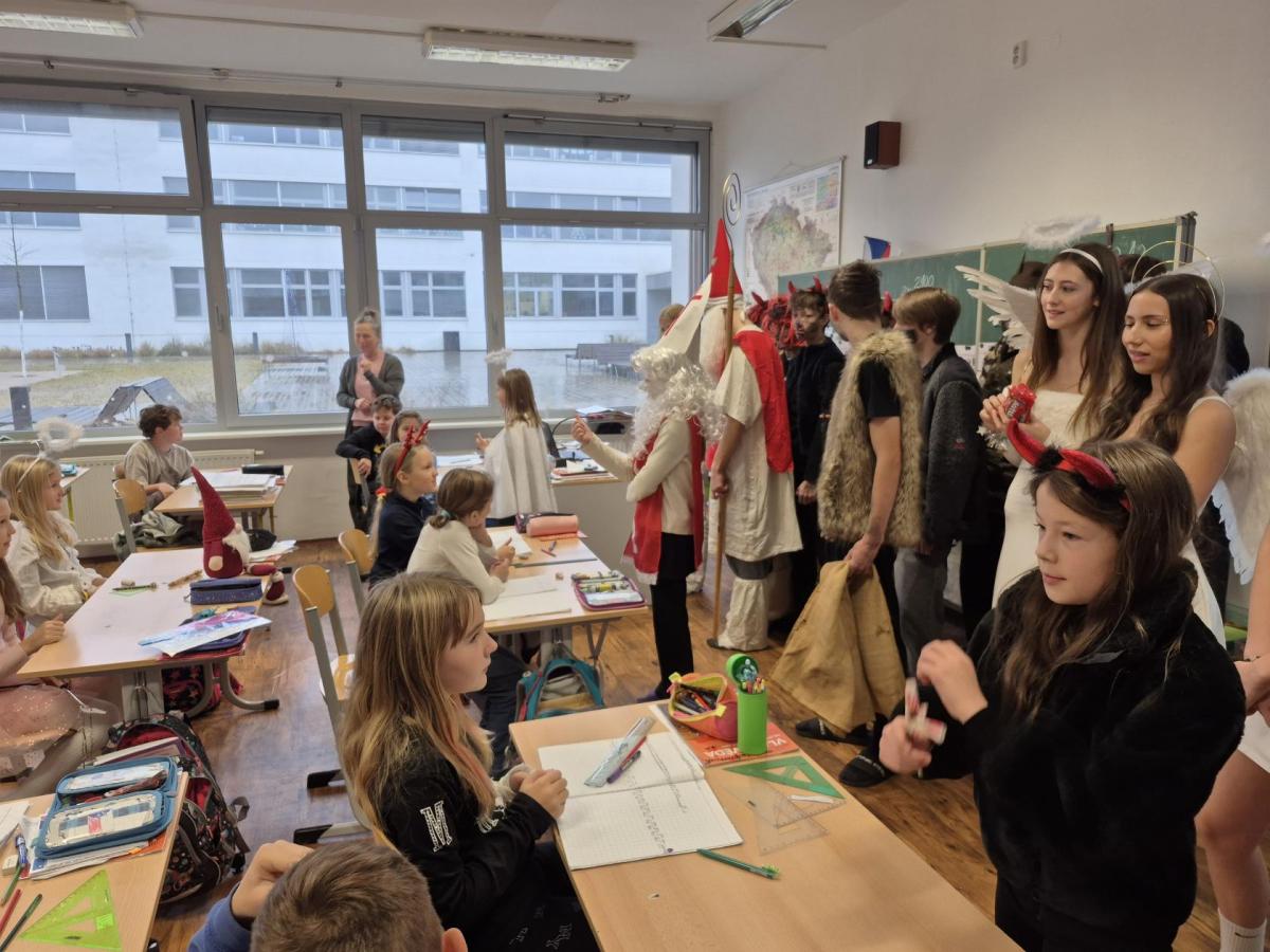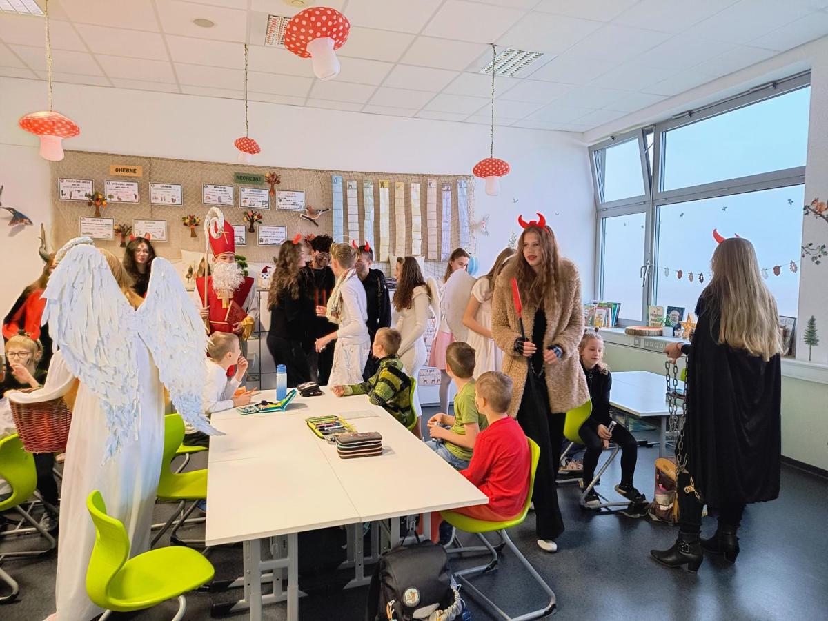 Ráda bych touto cestou vyjádřila velké poděkování žákům 9. ročníku, kteří pro spolužáky z prvního stupně připravili nádhernou mikulášskou nadílku. Mikuláš, andělé i čerti se své role ujali s nadšením a vytvořili nezapomenutelnou atmosféru plnou radosti a kouzelného očekávání.