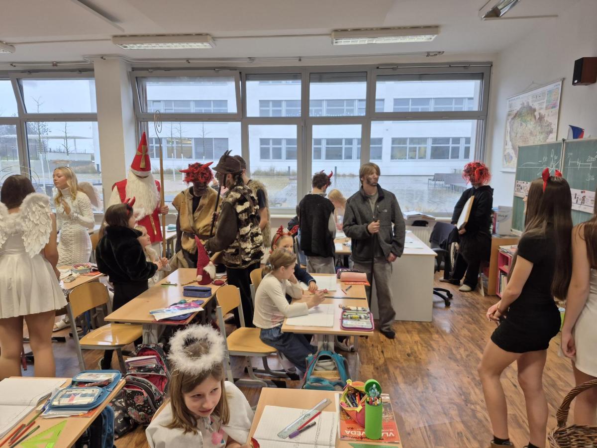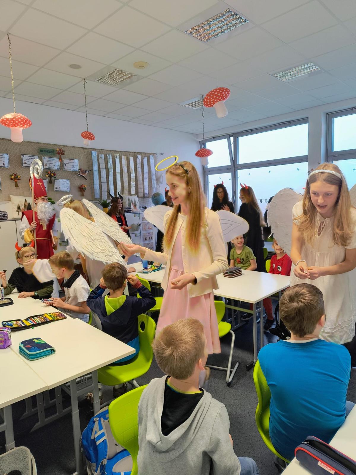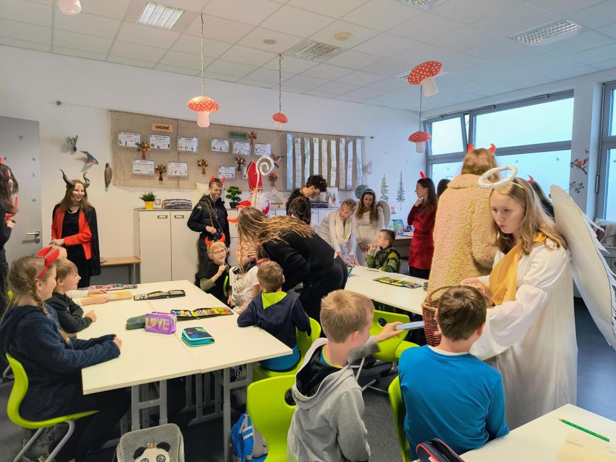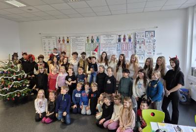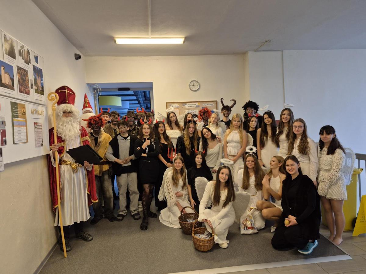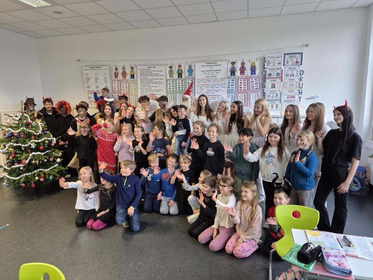 Ráda bych touto cestou vyjádřila velké poděkování žákům 9. ročníku, kteří pro spolužáky z prvního stupně připravili nádhernou mikulášskou nadílku. Mikuláš, andělé i čerti se své role ujali s nadšením a vytvořili nezapomenutelnou atmosféru plnou radosti a kouzelného očekávání.