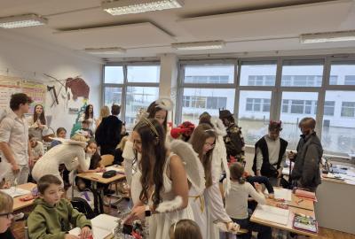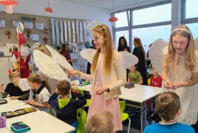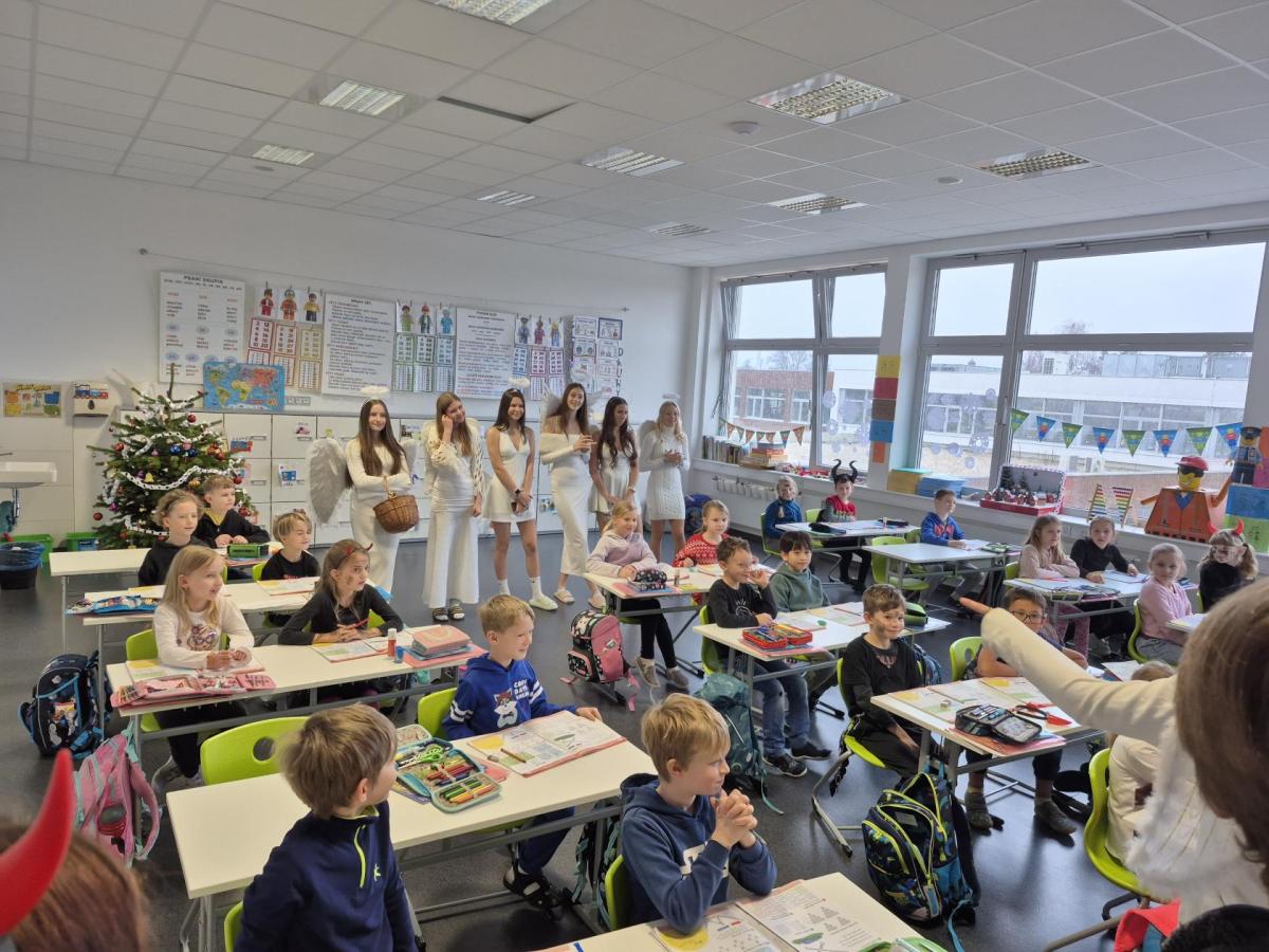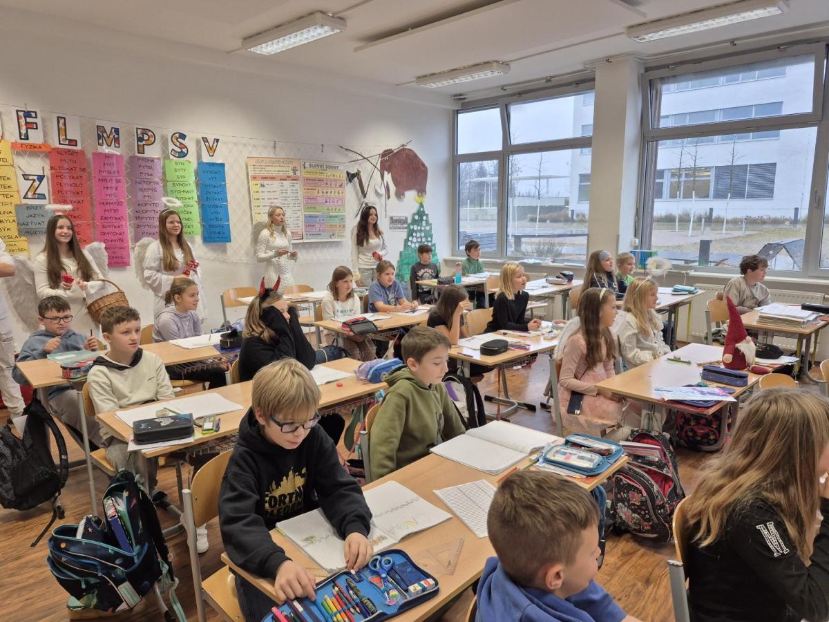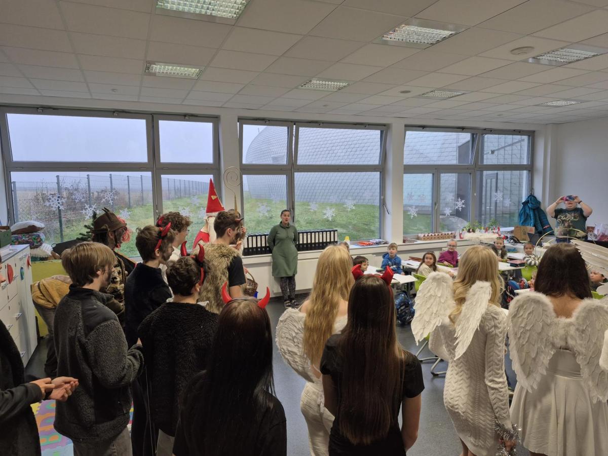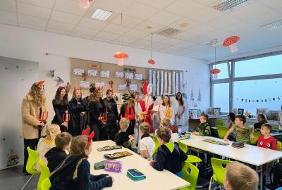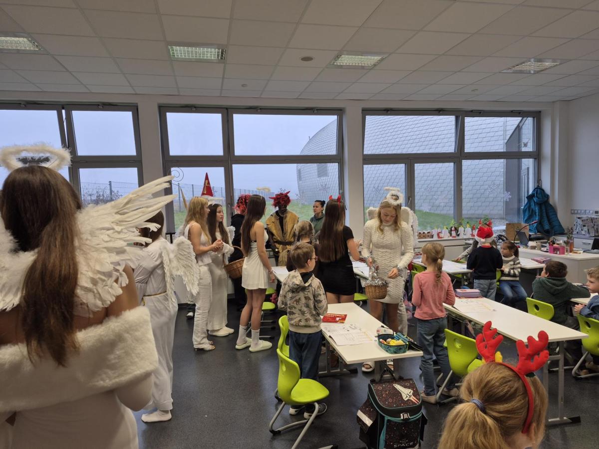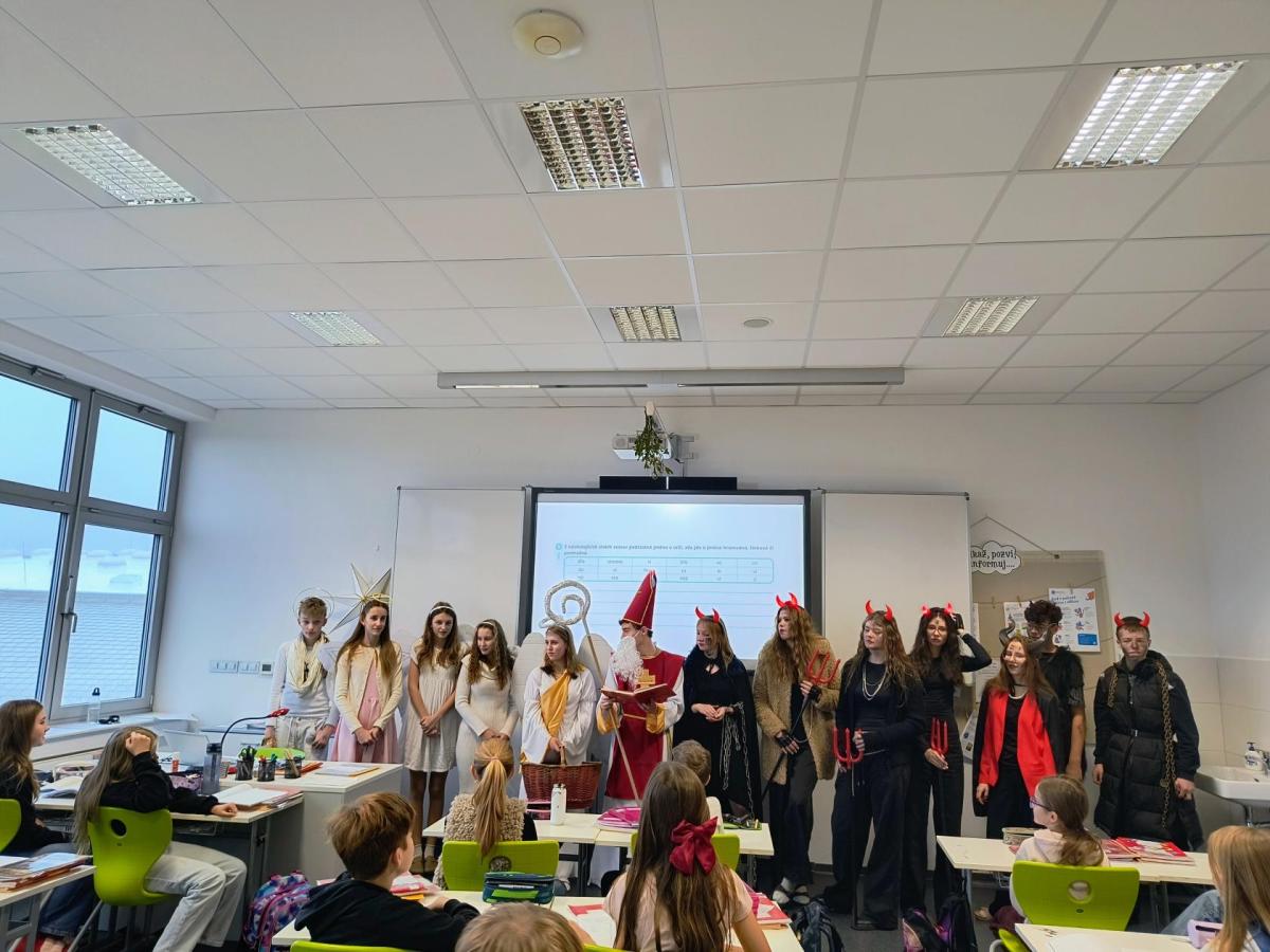 Ráda bych touto cestou vyjádřila velké poděkování žákům 9. ročníku, kteří pro spolužáky z prvního stupně připravili nádhernou mikulášskou nadílku. Mikuláš, andělé i čerti se své role ujali s nadšením a vytvořili nezapomenutelnou atmosféru plnou radosti a kouzelného očekávání.