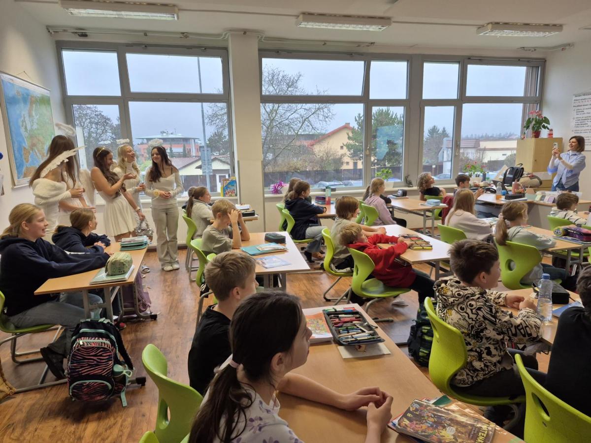 Děti si odnesly nejen sladkou odměnu, ale také spoustu hezkých zážitků. Deváťáci se úkolu zhostili zodpovědně a s velkou dávkou kreativity. Ukázali také, že umí být ohleduplní ke svým mladším spolužákům.