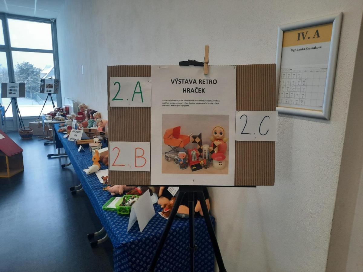V průběhu prosince 2022 si žáci druhých tříd připravili v rámci hodin prvouky výstavu retro hraček. Tyto hračky si zapůjčili od svých rodičů nebo prarodičů. Zájemci se na ně mohli podívat v prvním patře nové budovy.